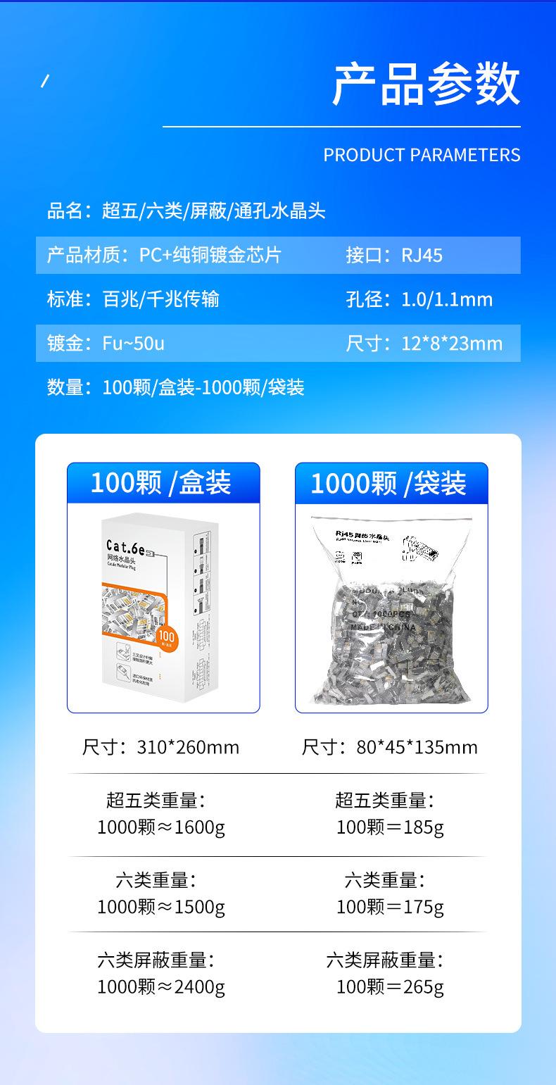 Categoría 5E Cabeza Cristal Categoría 6 Chapado en Oro Red Rj45 Pasante Cobre Puro Apantallado Categoría 5E 6 Cable de Red Gigabit Cabeza Cristal