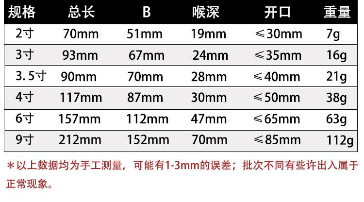 Peso: 2 pulgadas 7 gramos 3 pulgadas 19 gramos 4 pulgadas 39 gramos 6 pulgadas 74 gramos 9 pulgadas 129 gramos