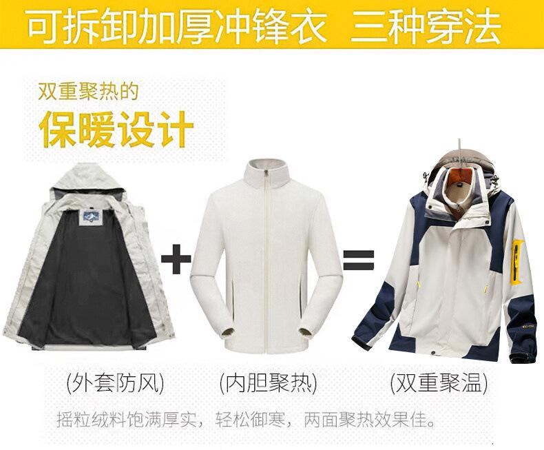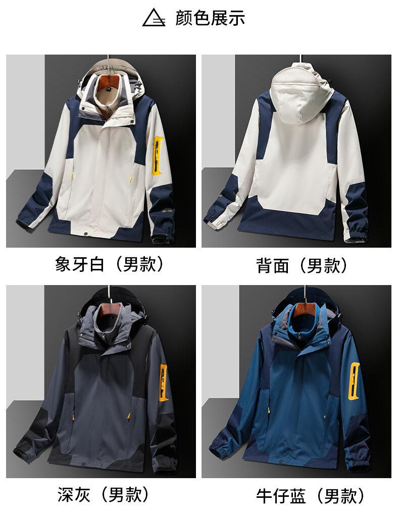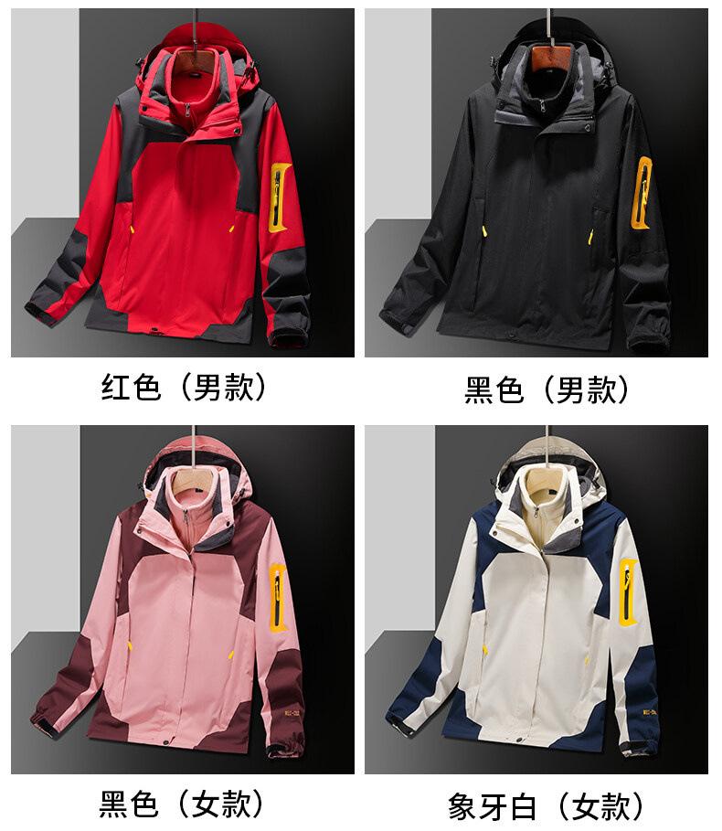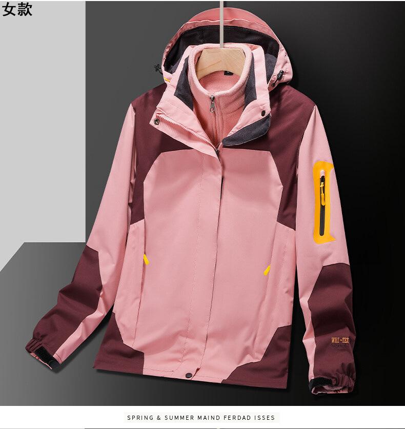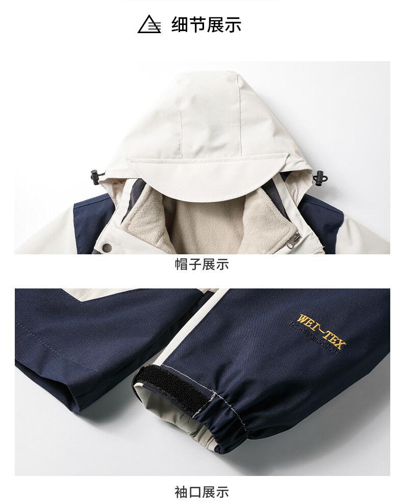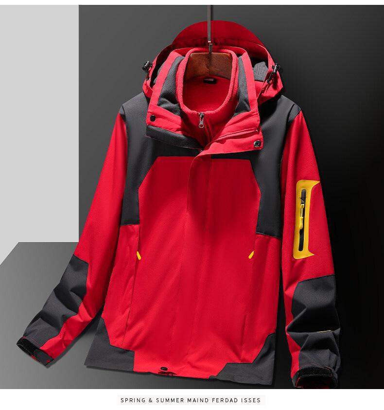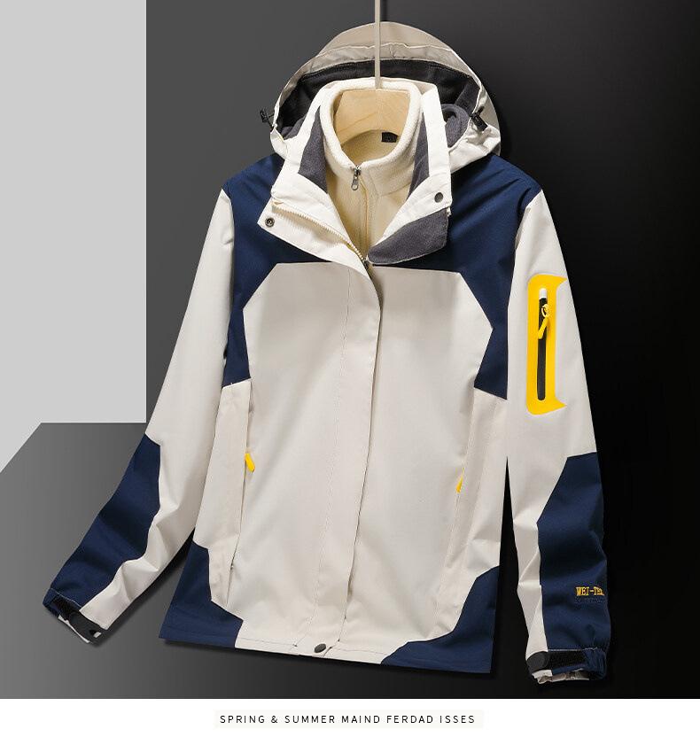Chaqueta de invierno para exteriores para hombre y mujer, conjunto de dos piezas desmontable tres en uno con combinación de colores, chaqueta gruesa y cálida para montañismo con forro polar