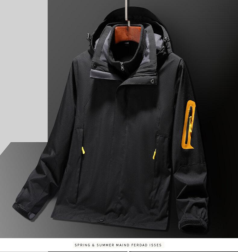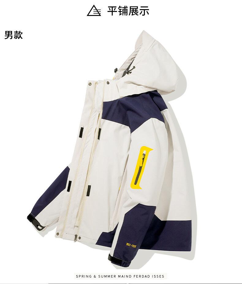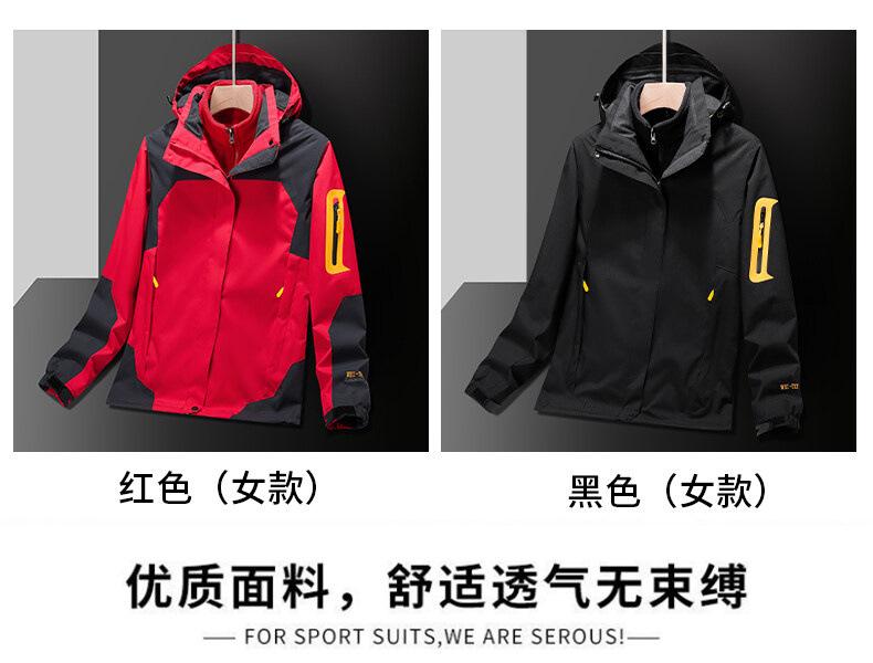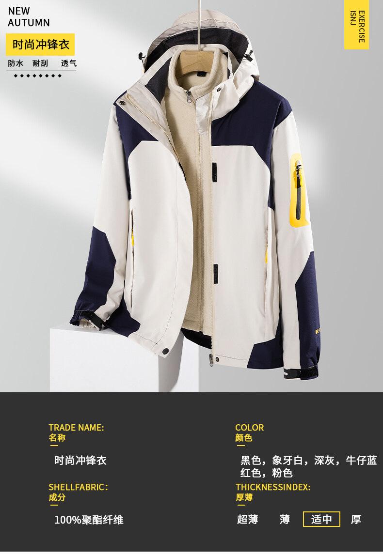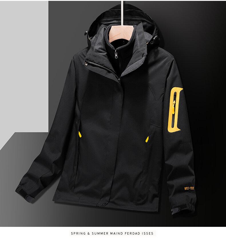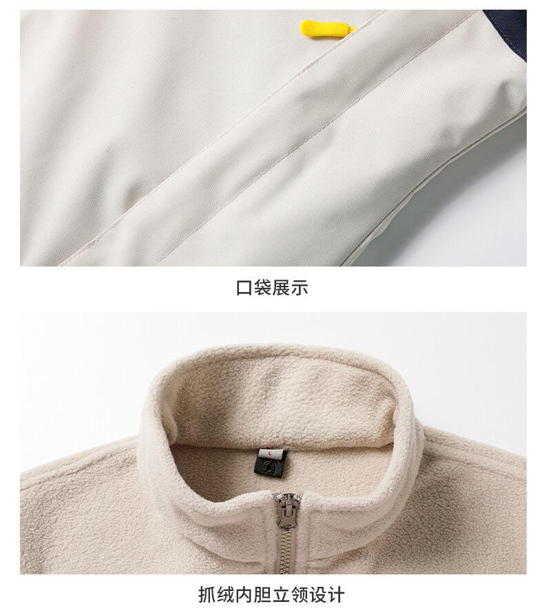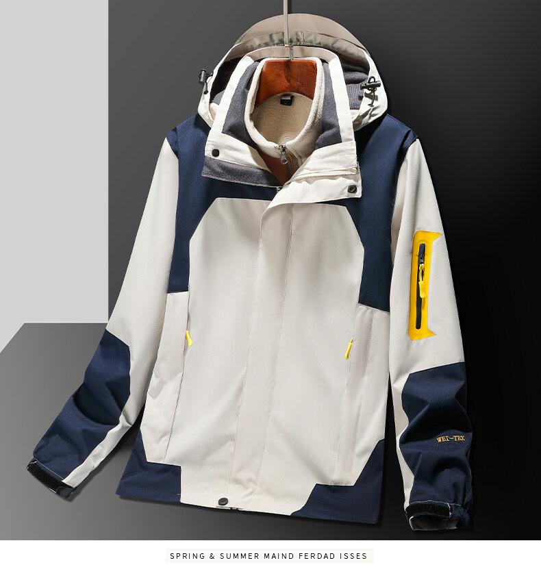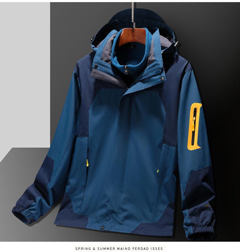 Chaqueta de invierno para exteriores para hombre y mujer, conjunto de dos piezas desmontable tres en uno con combinación de colores, chaqueta gruesa y cálida para montañismo con forro polar