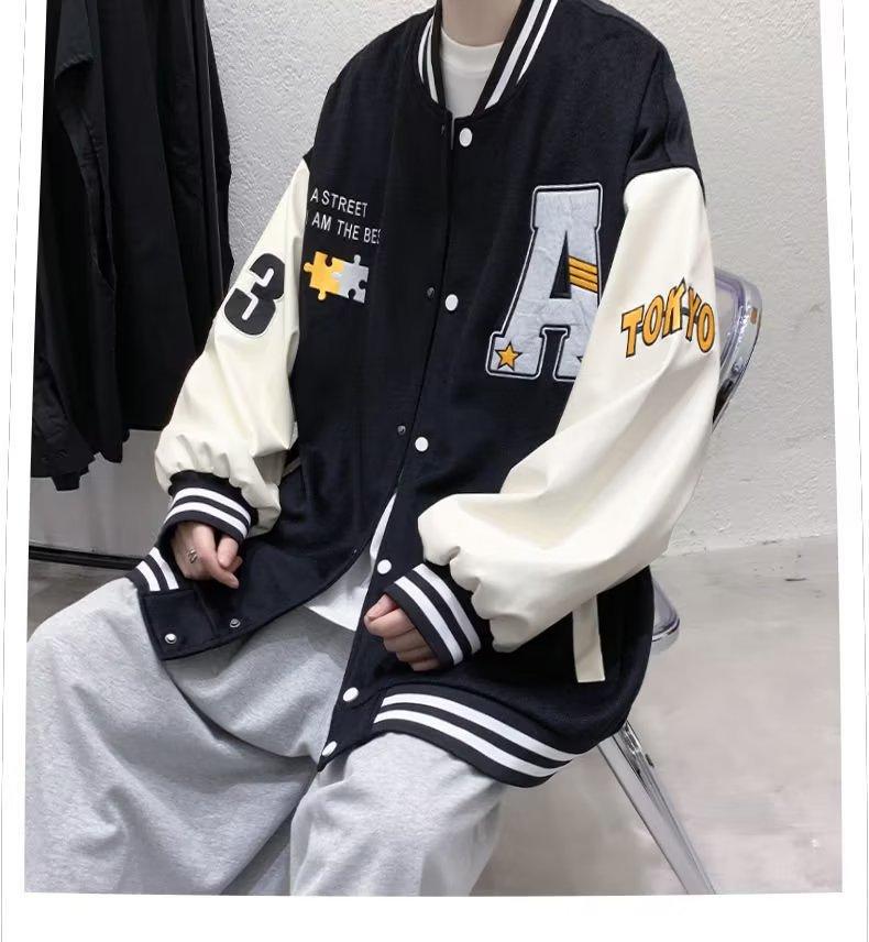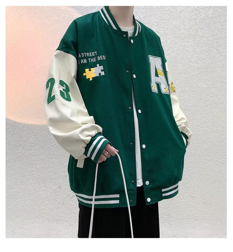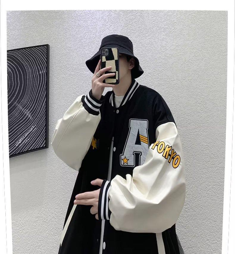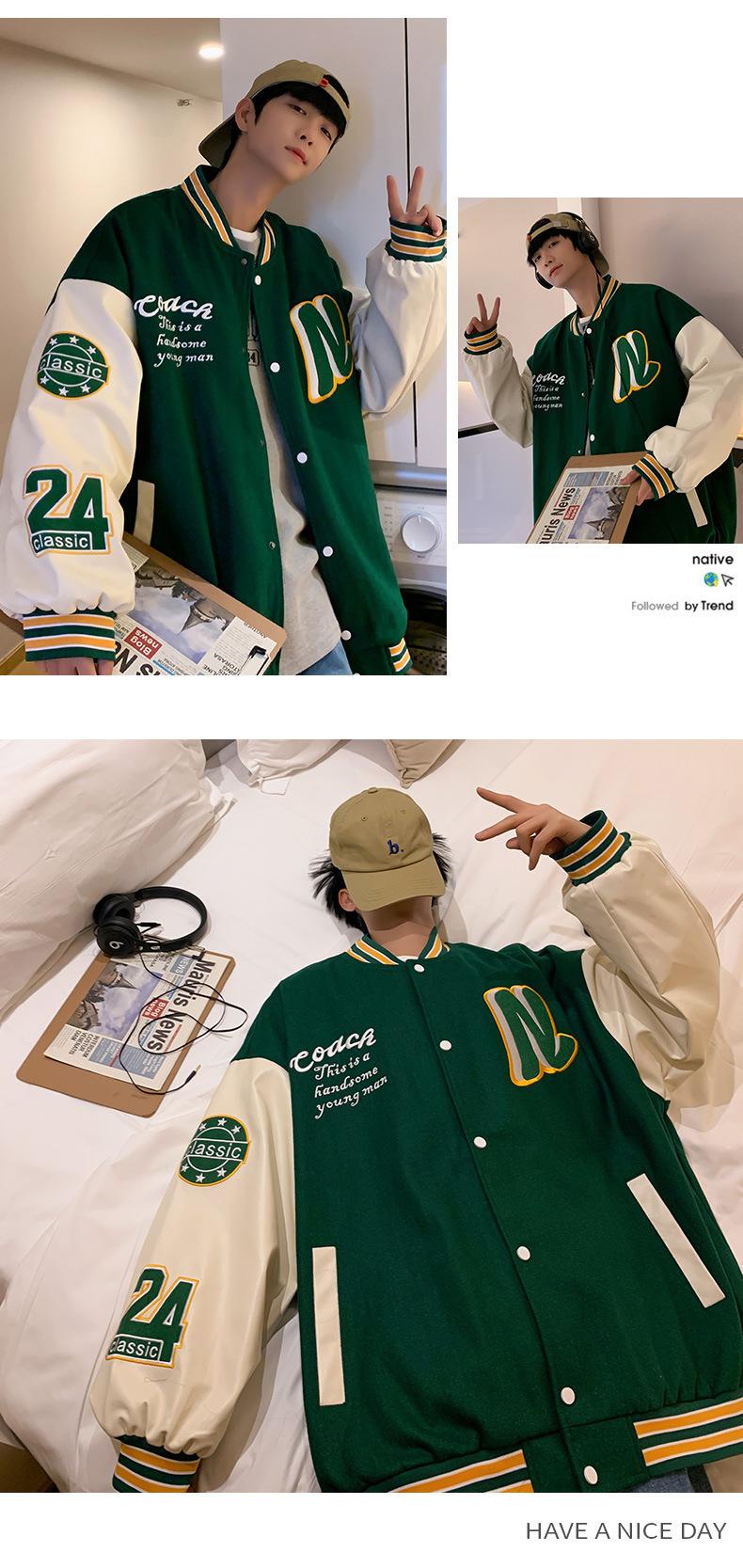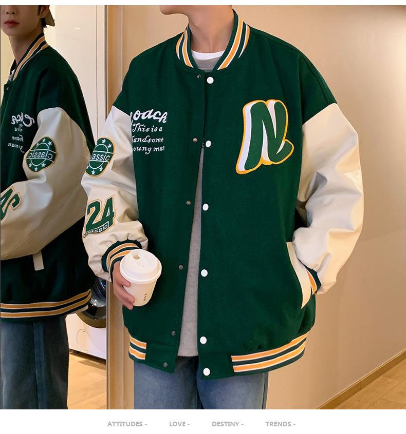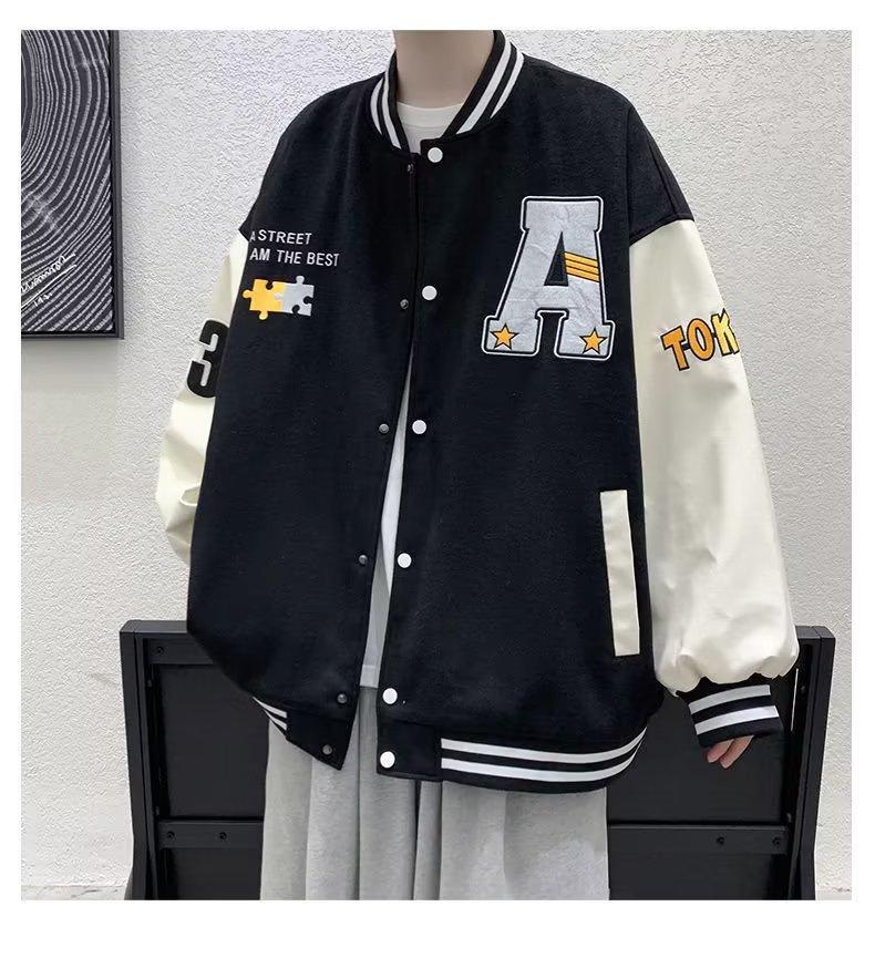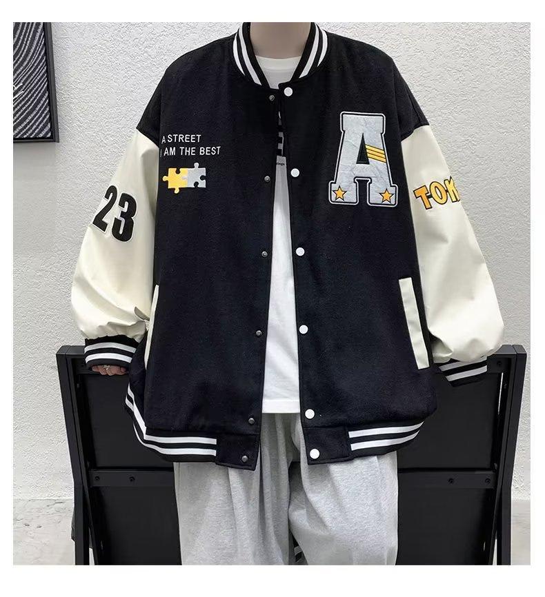 Traje de béisbol de marca de moda para hombre, primavera y otoño 2023, nuevo, informal, con costuras a juego y color en contraste, chaqueta elegante para hombre.