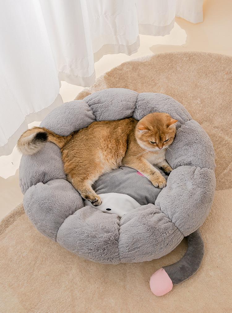 Nido para gato cálido engrosado de otoño e invierno, cama para gato con forma de pétalo, nido para perro, tapete para dormir para mascotas, suministros para mascotas para perros pequeños