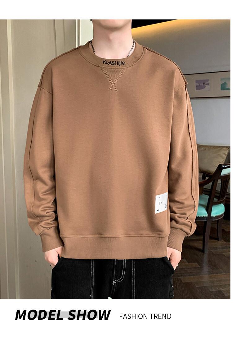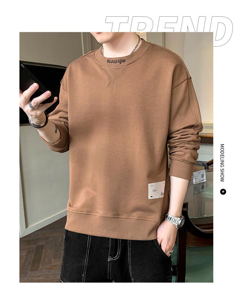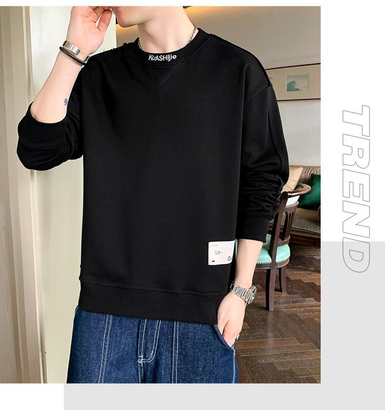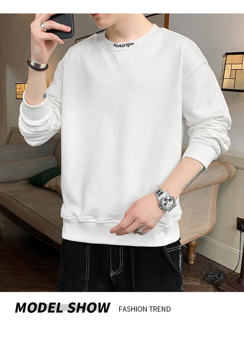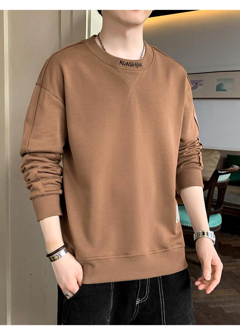 Suéter de manga larga para hombre otoño 2023, sencillo de cuello redondo, camiseta básica, suéter de cuello redondo para hombre a la moda, popular