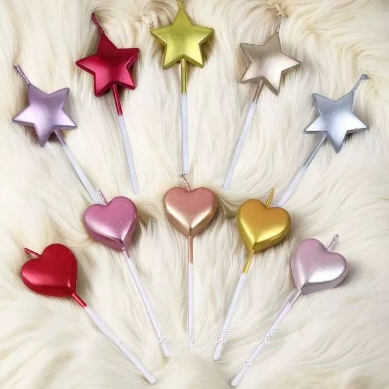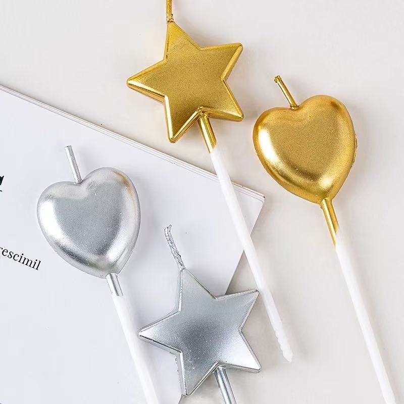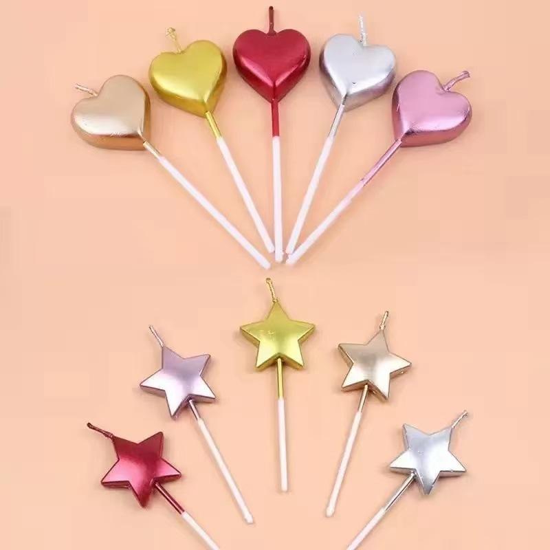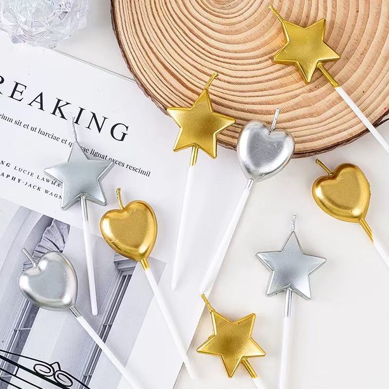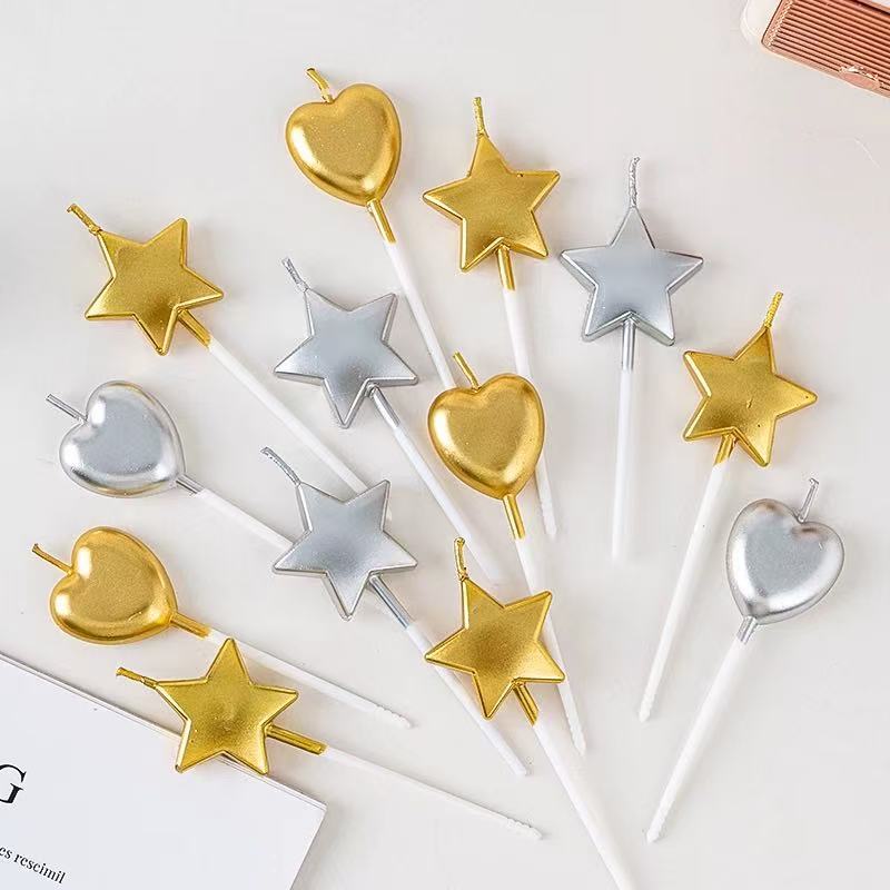 Velas de Cumpleaños en Forma de Estrella y Corazón Sin Humo Sin Lágrimas Chapadas en Oro Plata Fiesta Celebridad de Internet Velas Suministros para Decoración de Pastel