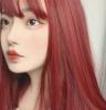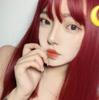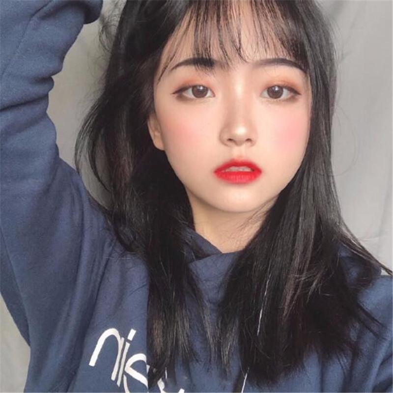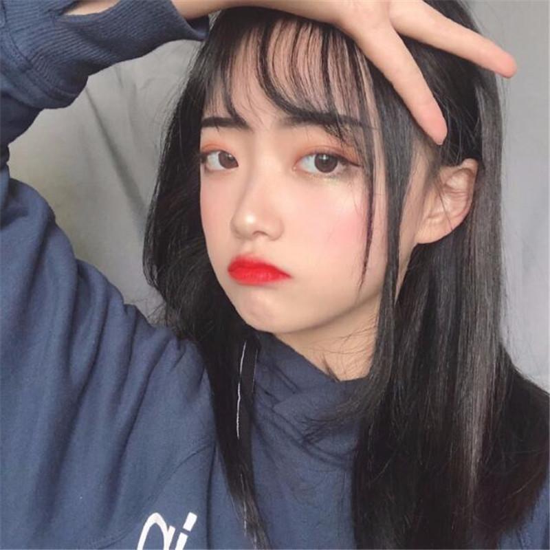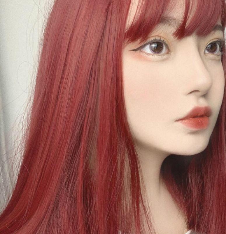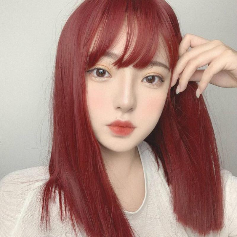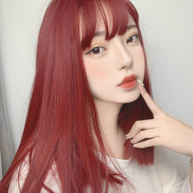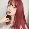 Peluca natural al por mayor para mujer, cabello hasta la clavícula, mediano largo lacio, flequillo de aire rojo neto, reparación facial, rojo vino, fibra química, tocado al por mayor