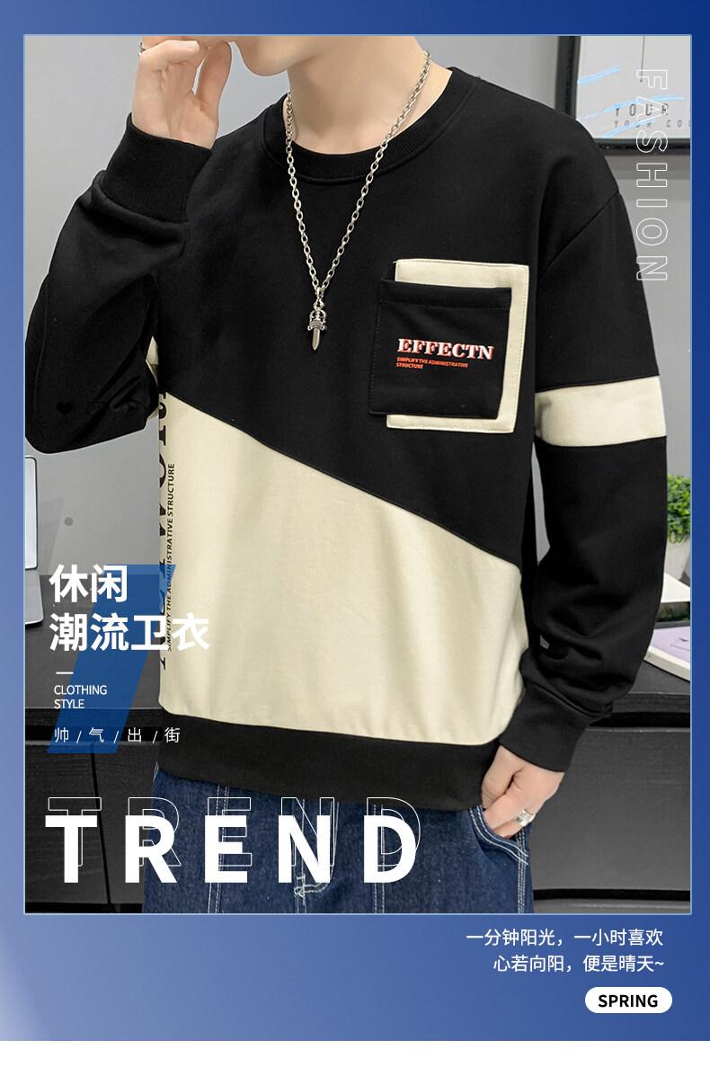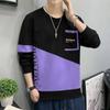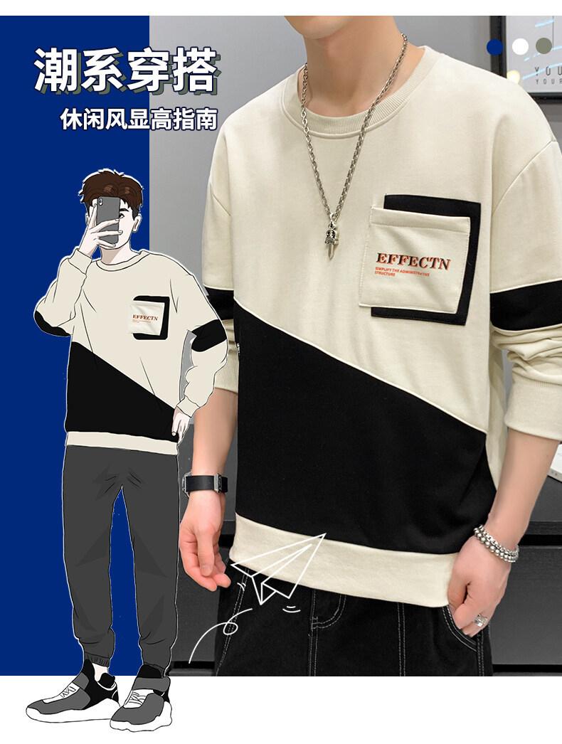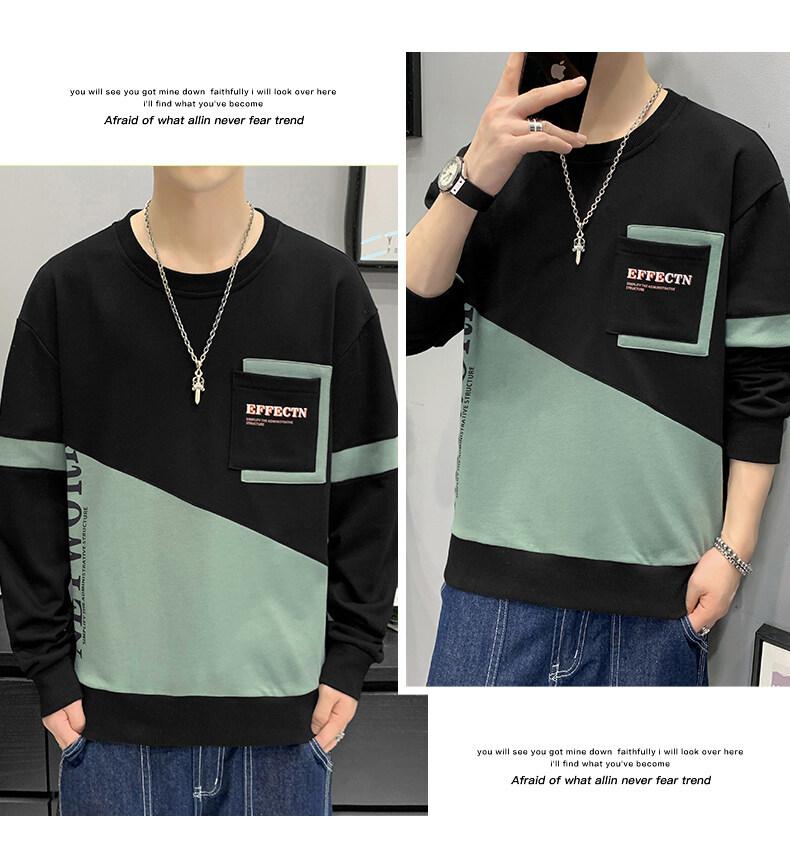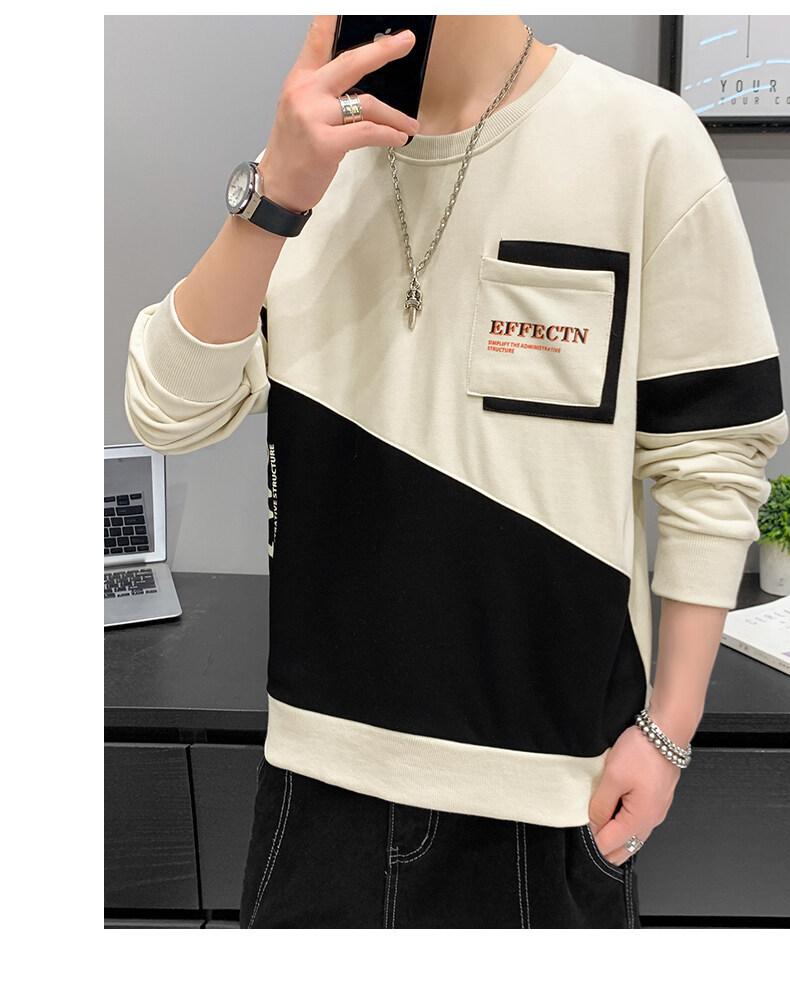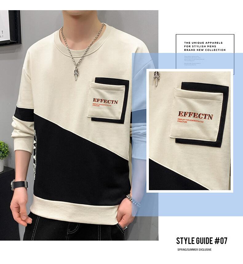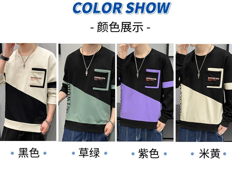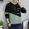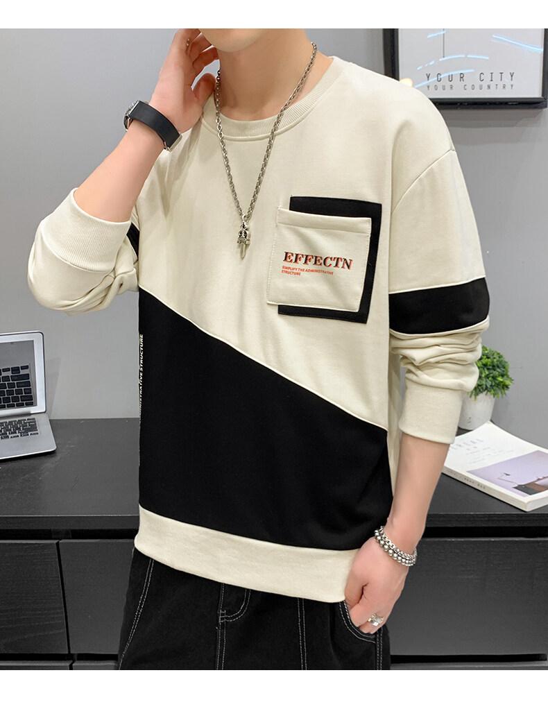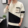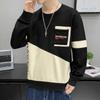 Suéter de primavera 2023 de manga larga para hombre, cuello redondo, camisa básica, moda moderna para hombre, cuello redondo, costuras a contraste, suéter popular