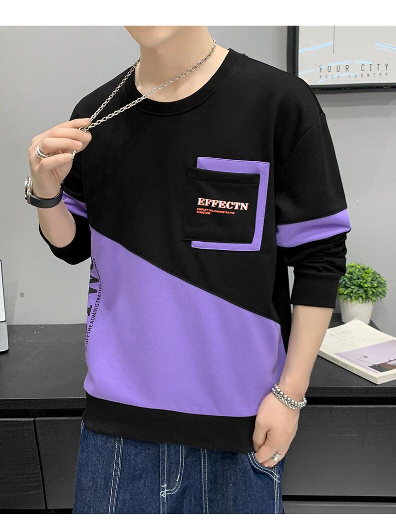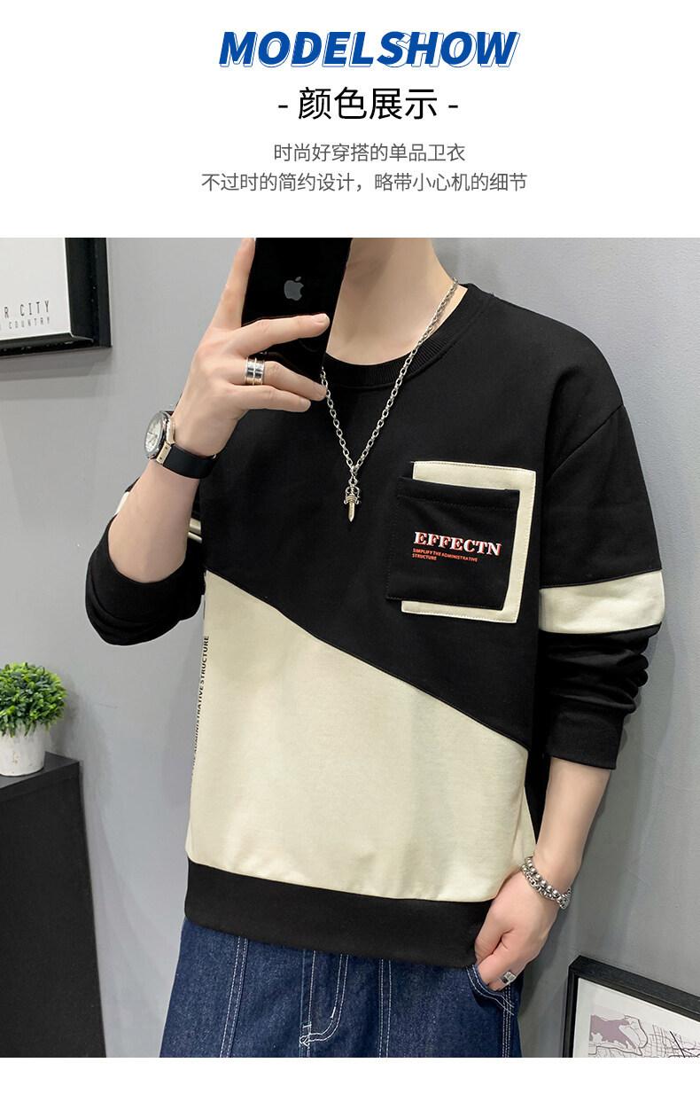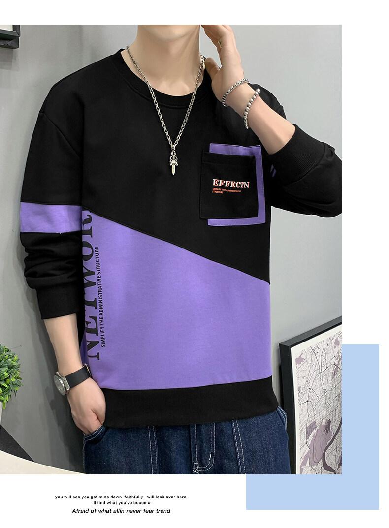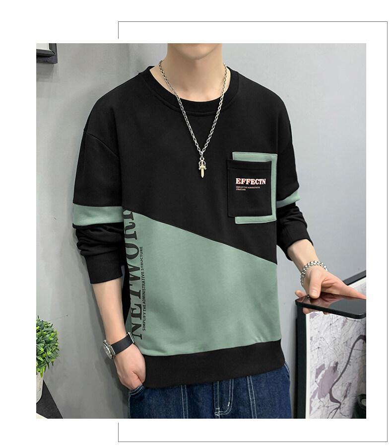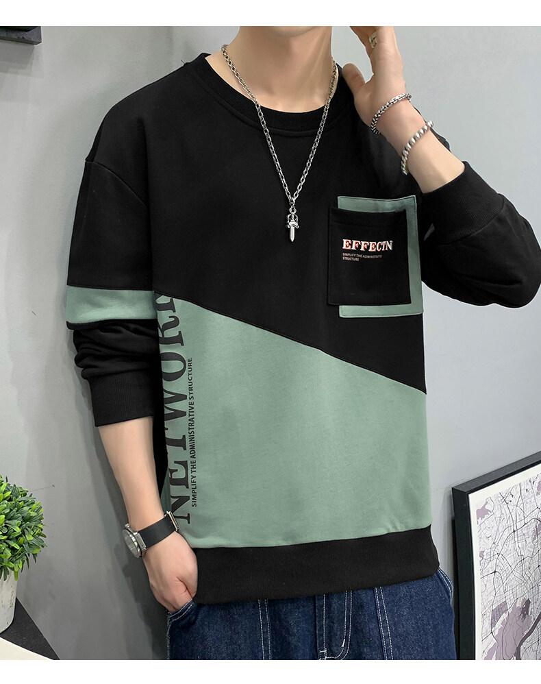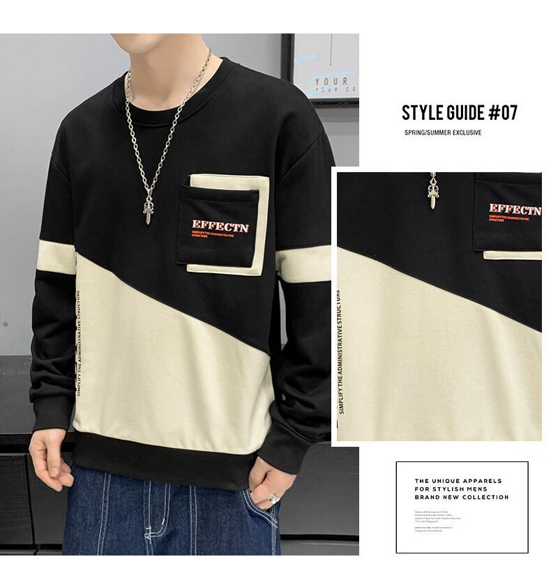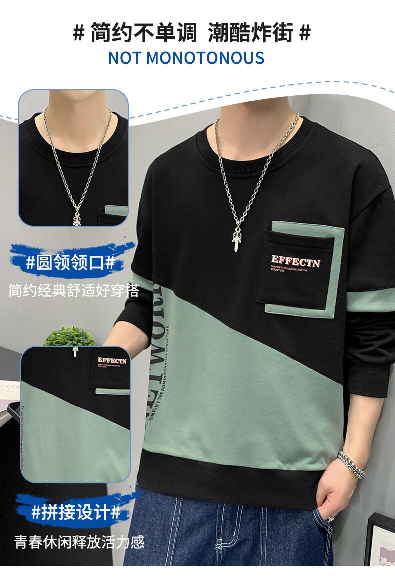 Suéter de primavera 2023 de manga larga para hombre, cuello redondo, camisa básica, moda moderna para hombre, cuello redondo, costuras a contraste, suéter popular