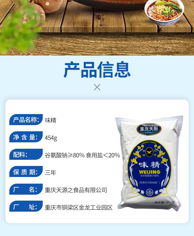 Chongqing Tianchu Msg Polvo Puro Tianyan Salado Polvo Msg Marca Antigua Hogar Comercial Pequeños Fideos Condimento para Cocinar