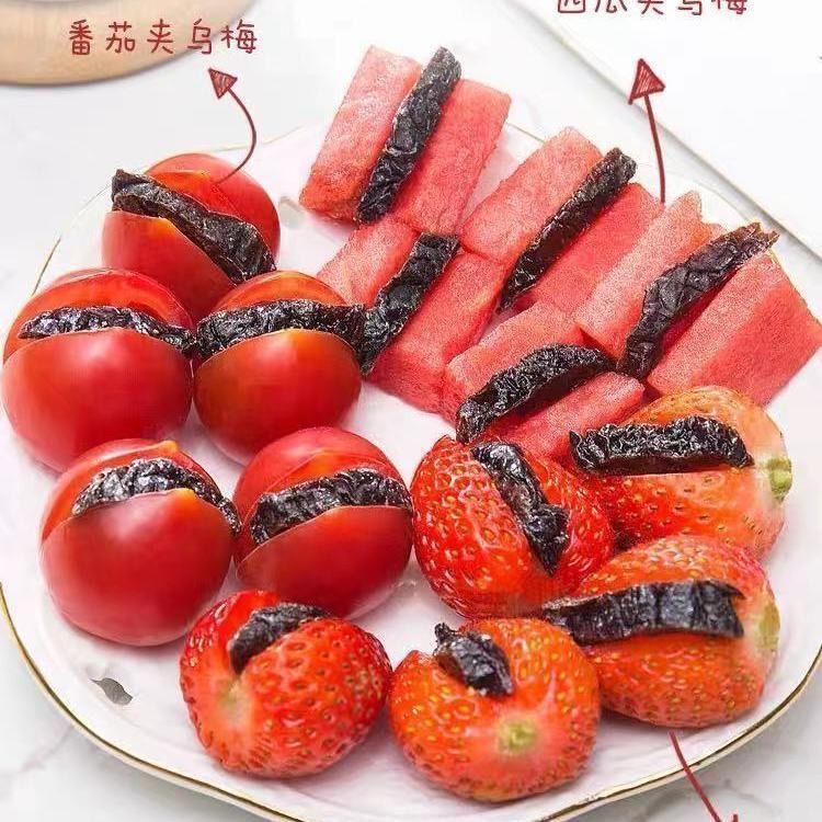 Fruta Deshidratada Agridulce Saborizada al Mayoreo Ciruela Negra Tienda de Carne Seca Ciruela Negra Jitomates Cherry Tiras Sin Semilla Snacks Salados Taiwaneses para Uso Comercial