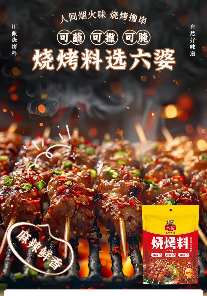 Condimento para Barbacoa Liupo Tres en Uno 125g Marinada, Espolvoreador, Salsa para Mojar, Polvo de Chile Multiusos, Condimento para Barbacoa con Comino