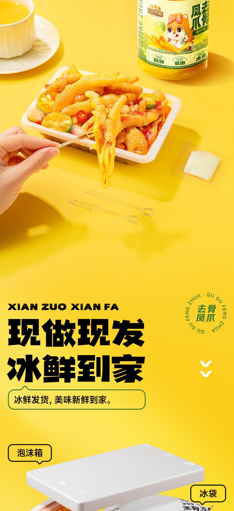 Three Squirrels_ Paquete de 1.0 kg de Patas de Pollo Deshuesadas, Snacks Deshuesados Sabor Limón Ácido y Picante para Satisfacer Antojos y Saciar el Hambre