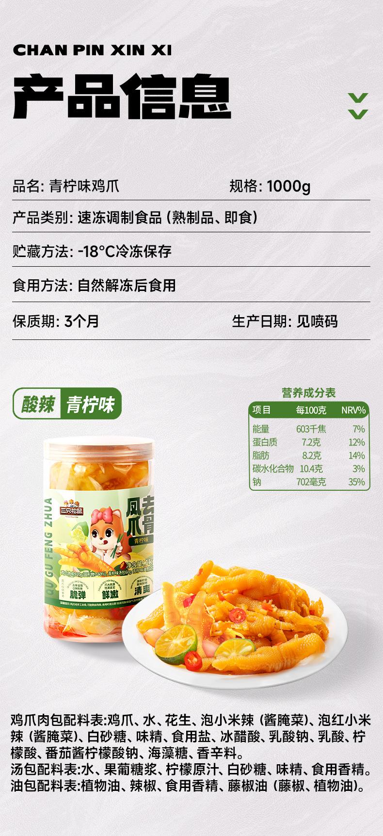 Hot selling [pack of 1.0kg] hot and sour lemon boneless chicken feet
