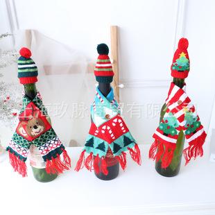 | Decoración de mesa para fiesta familiar de Navidad botella de vino set navideño sombrero bufanda tejido |