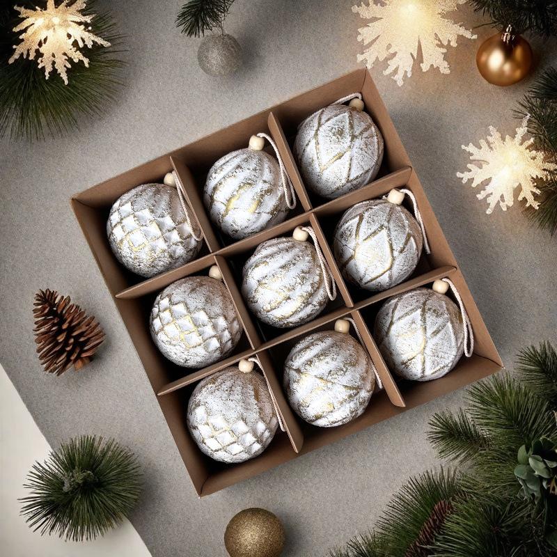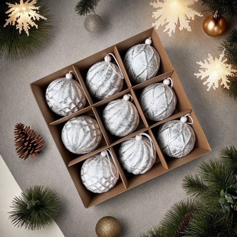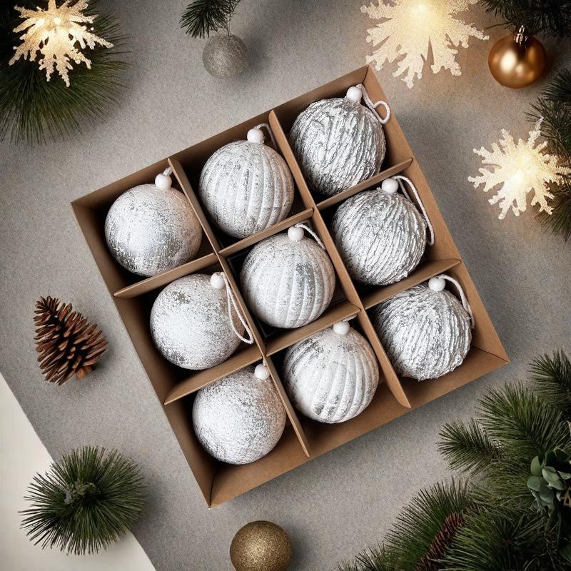 Nuevos Productos Transfronterizos Decoraciones Navideñas 8cm/9 Bola de Navidad sin Oro Paquetes de Regalo Colgantes para Árbol de Navidad de Centro Comercial