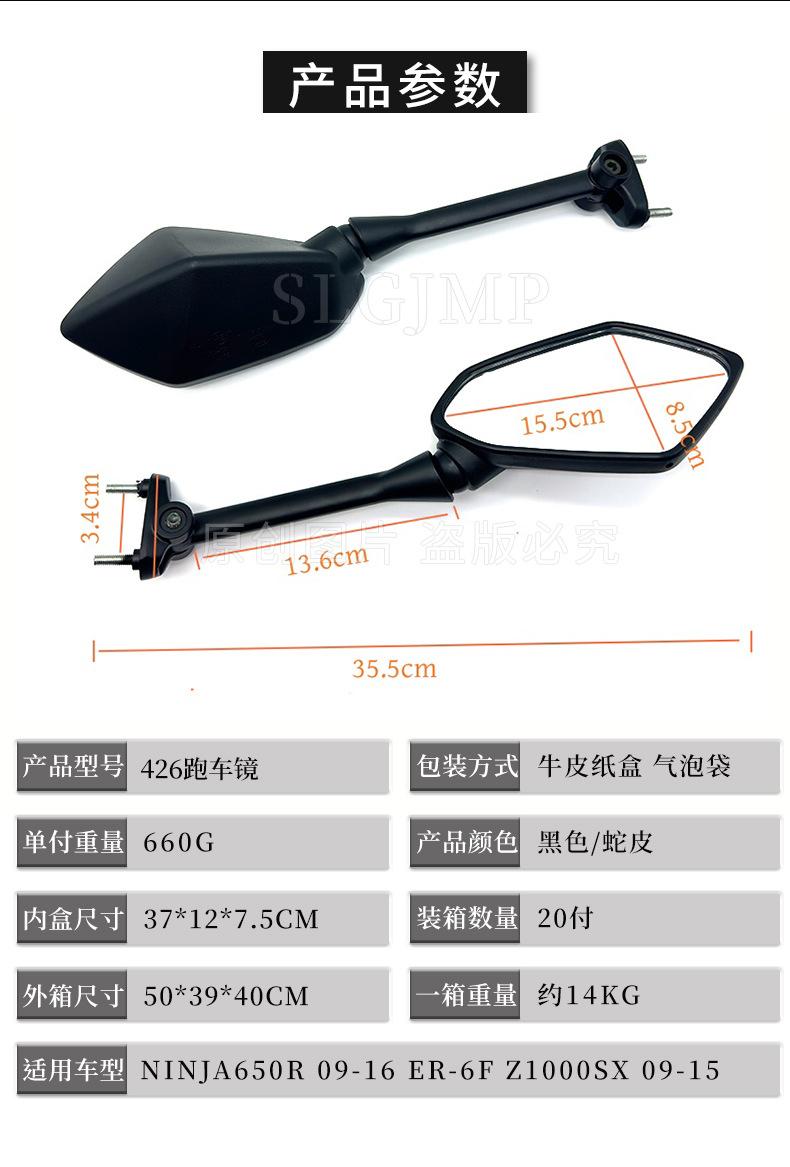 Aplicable a Kawasaki NINJA650R ER-6F Z1000SX 09-15 Espejo Retrovisor Espejo Retrovisor Espejo Reflectante
