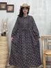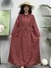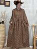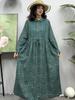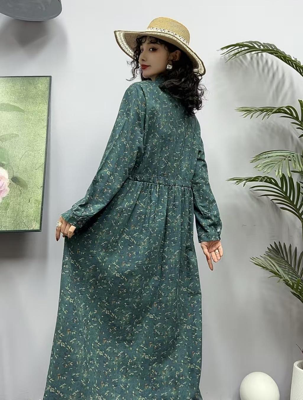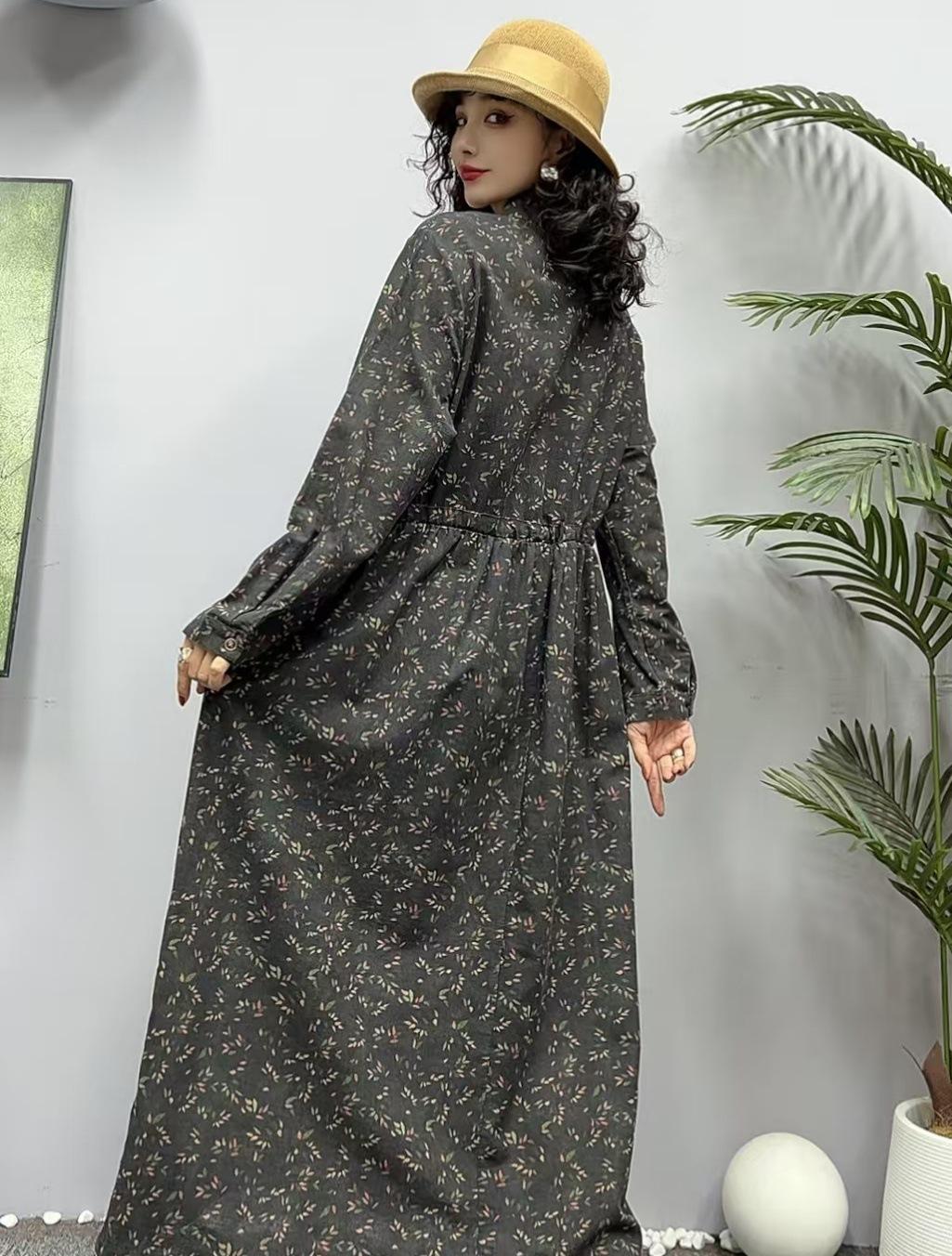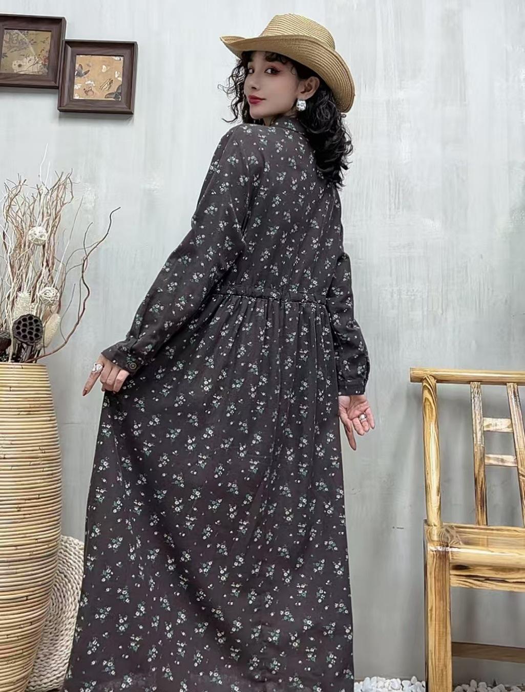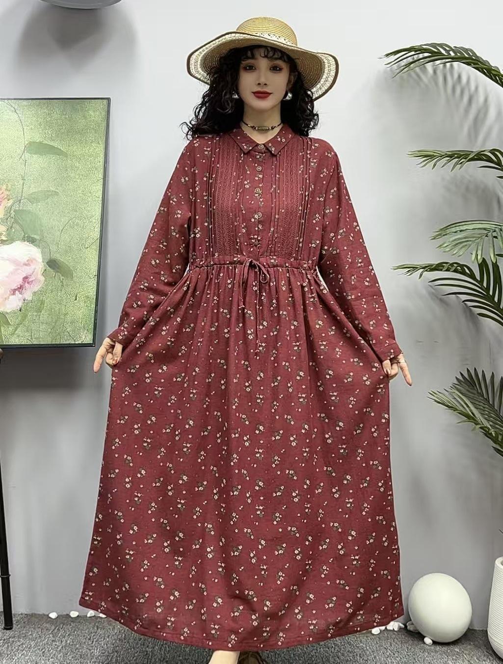 Compra Otoño 2025 Talla Grande Algodón y Lino Camisa Medio Abierta Cuello Falda Larga Floral Cinturón Cordón Ajustable Suelto Vestido de Mujer al por mayor en Joom.pro