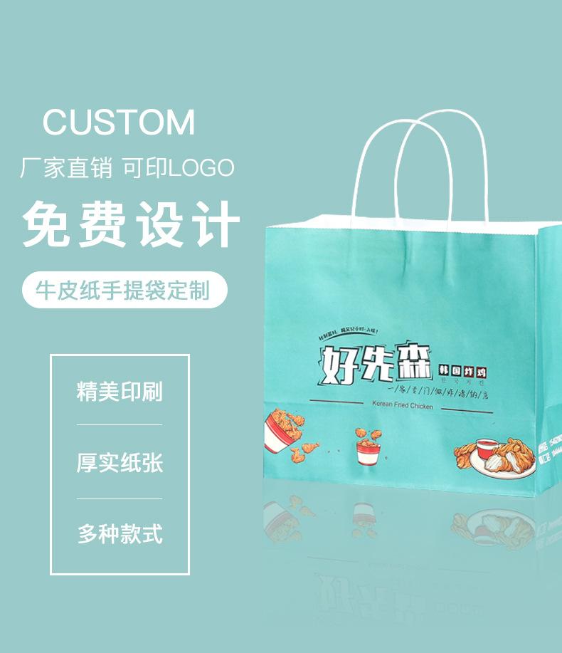 Catering puntual para llevar bolsa de papel portátil publicidad ropa compras regalo bolso de mano bolsa de papel Kraft portátil personalización