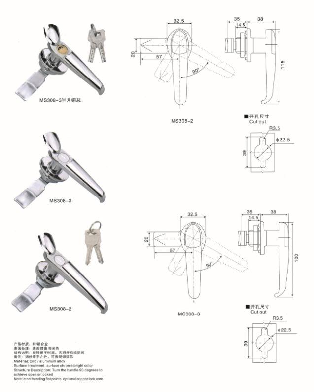 Adecuado para aparamenta; caja de distribución; caja de control de equipos eléctricos y otros gabinetes industriales para fines de apertura y cierre de cerradura de puerta antirrobo