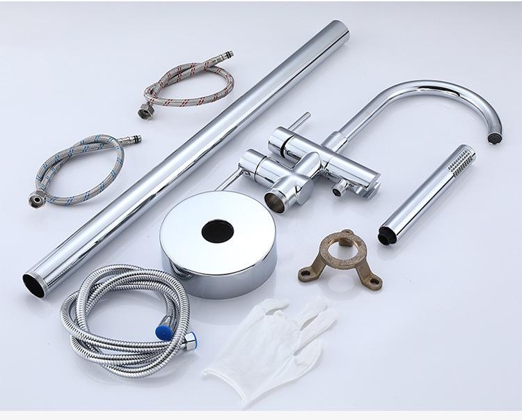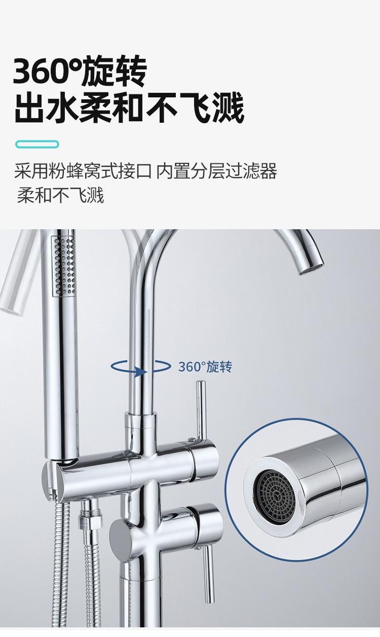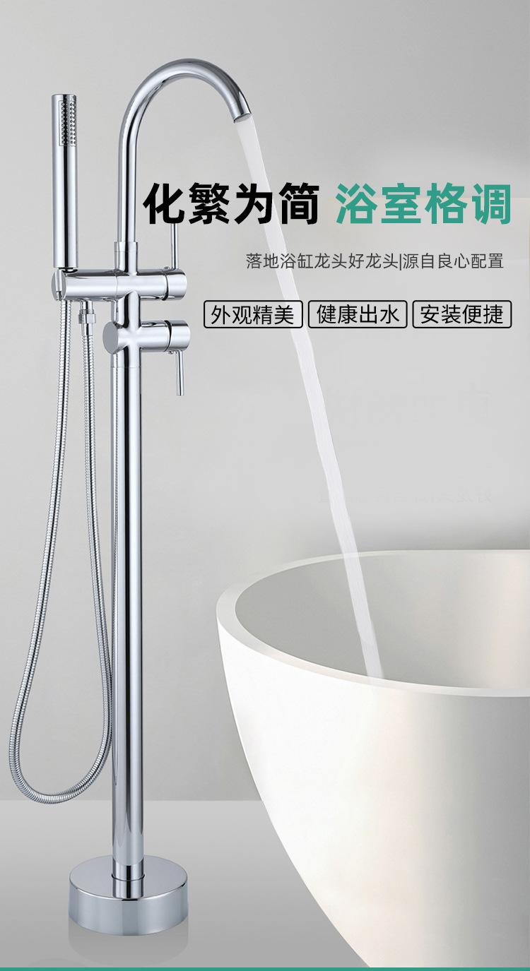 Grifo de bañera de pie simple todo cobre para baño, juego de ducha caliente y fría, grifo de bañera vertical para hotel