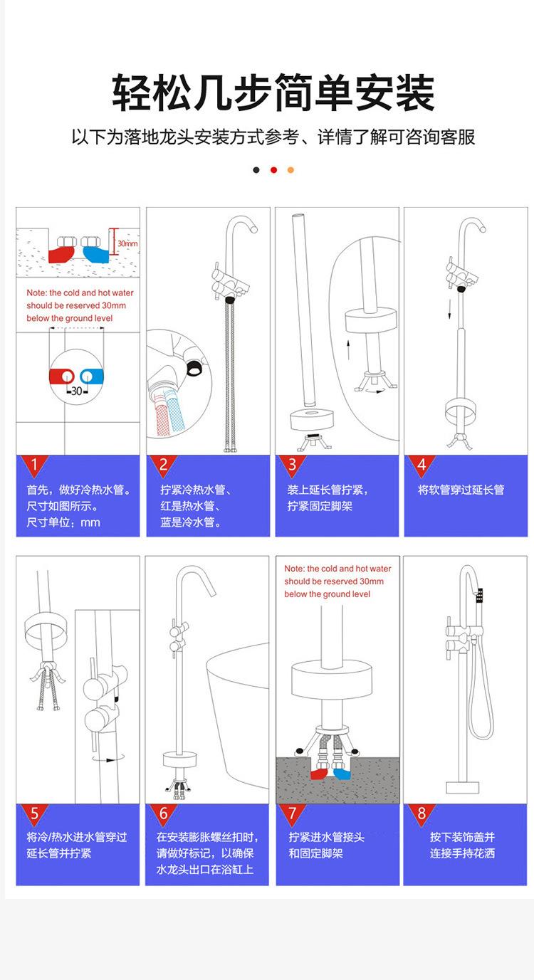 Vertical high basin faucet [natural color] water on the ground, Vertical high basin faucet [black] on the grou...