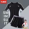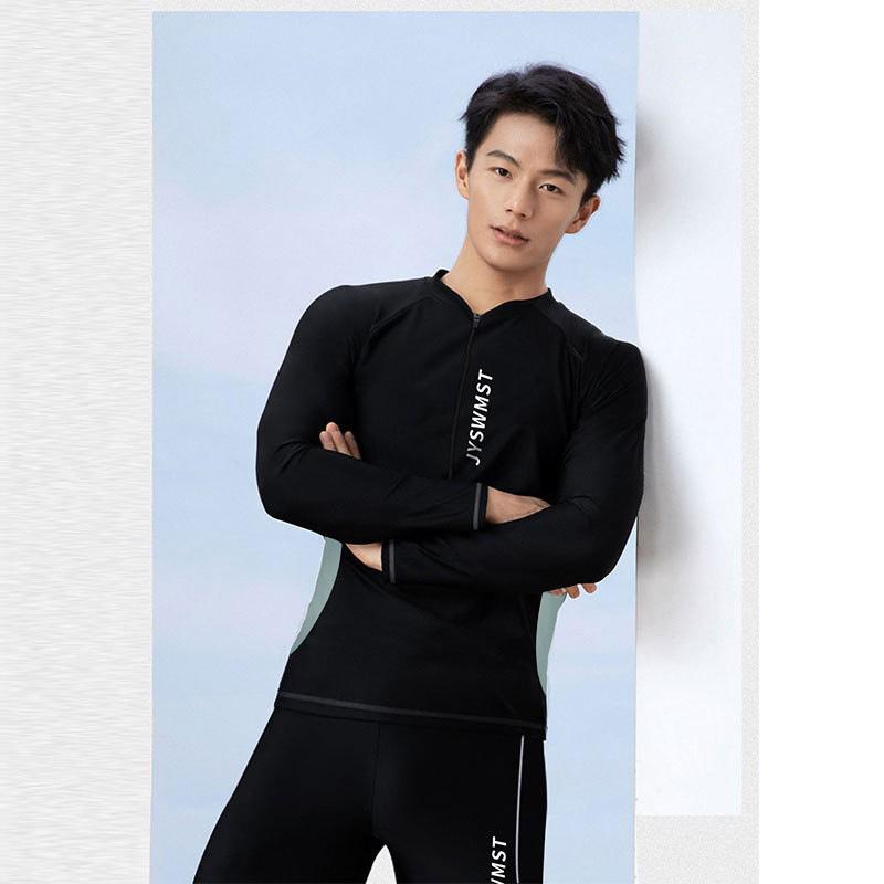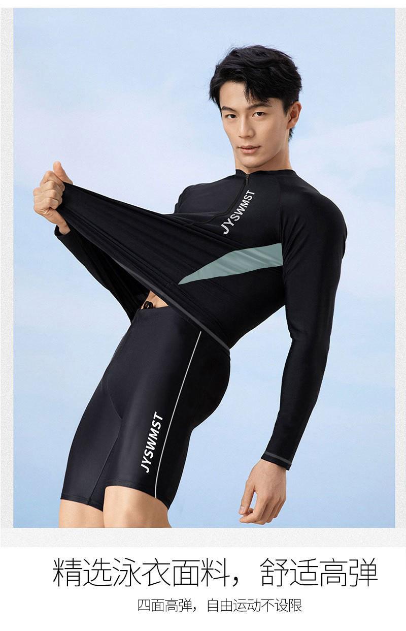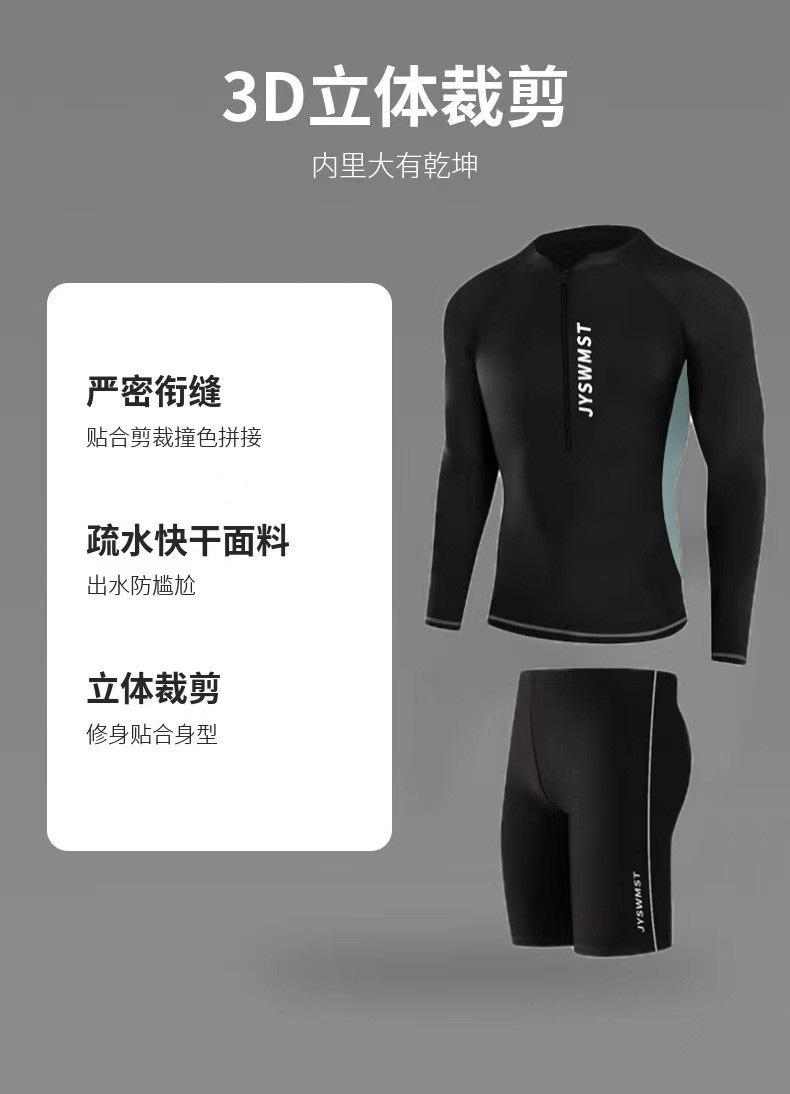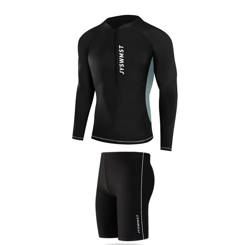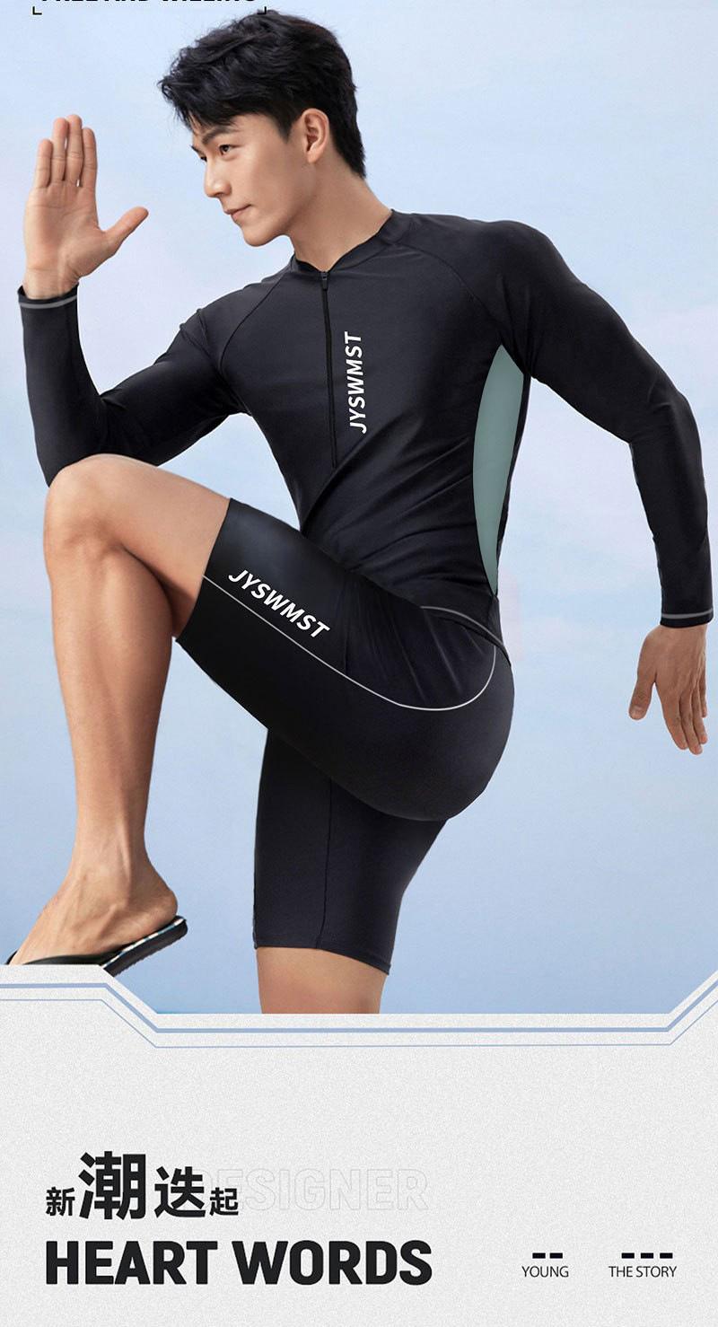 Traje de baño para hombre de cuerpo completo y manga larga con protección solar, traje de baño incómodo de cinco puntos, traje de baño de secado rápido para aguas termales, conjunto de traje de baño para hombre