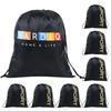 Mochila de poliéster con cordón ajustable para maratón, para deportes al aire libre, con impresión de logotipos publicitarios, disponible al por mayor.