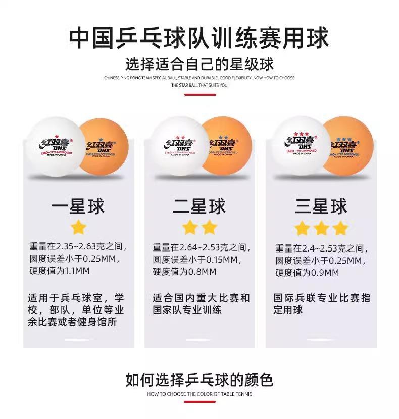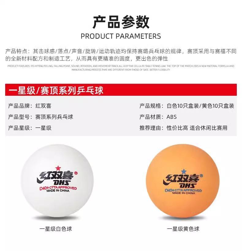 1 red double happiness two-star white table tennis ball