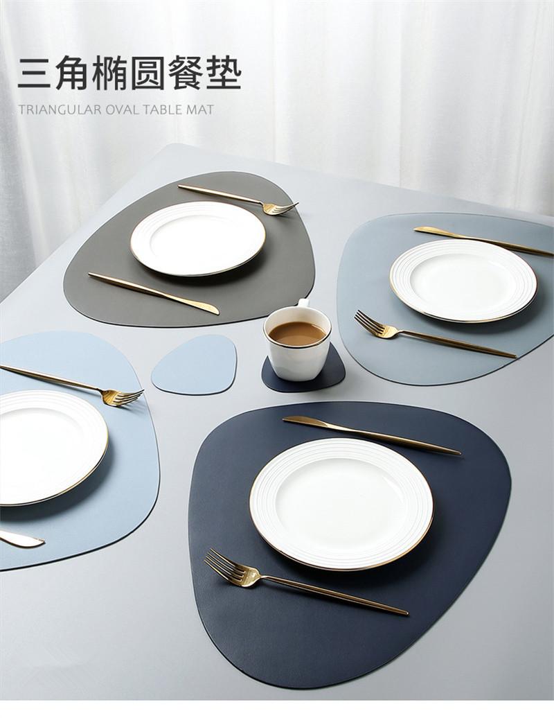 Mantel individual nórdico de cuero PU en stock, triangular, aislante, mantel de mesa, antideslizante, impermeable, mantel para plato, mantel para tazón, posavasos