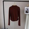 [Bi Zheng] Otoño/Invierno 2025 Nuevo Estilo Coreano Cuello Semi-Alto Ajustado Adelgazante Camiseta Básica Mujer Cepillada Versátil Mujer 5074