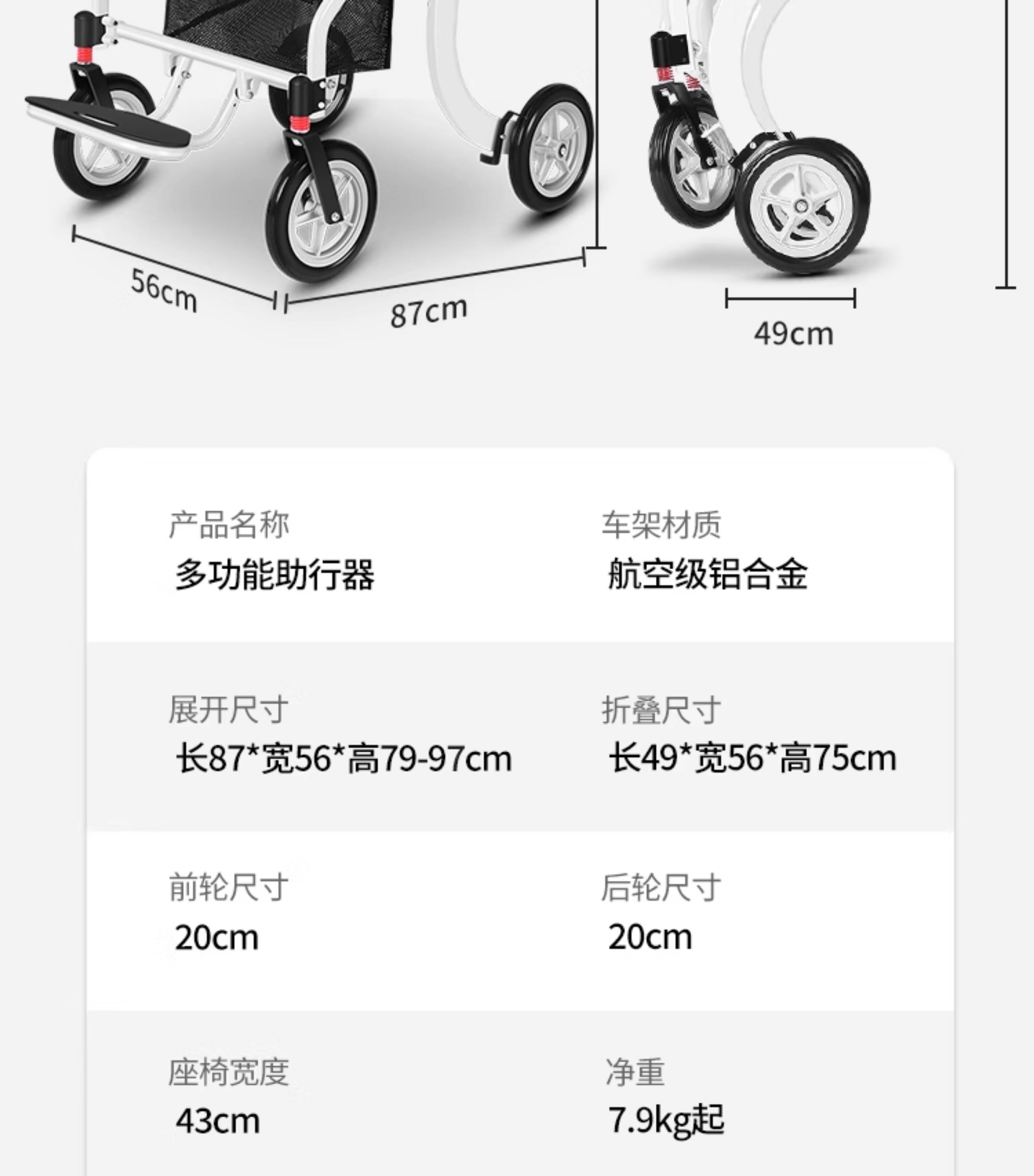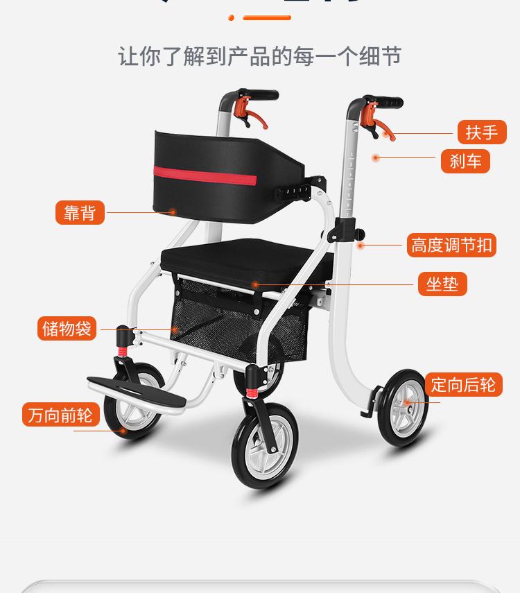 02 [red aluminum alloy model] multifunctional walker + can sit and push丨6 height levels available