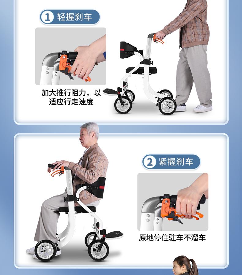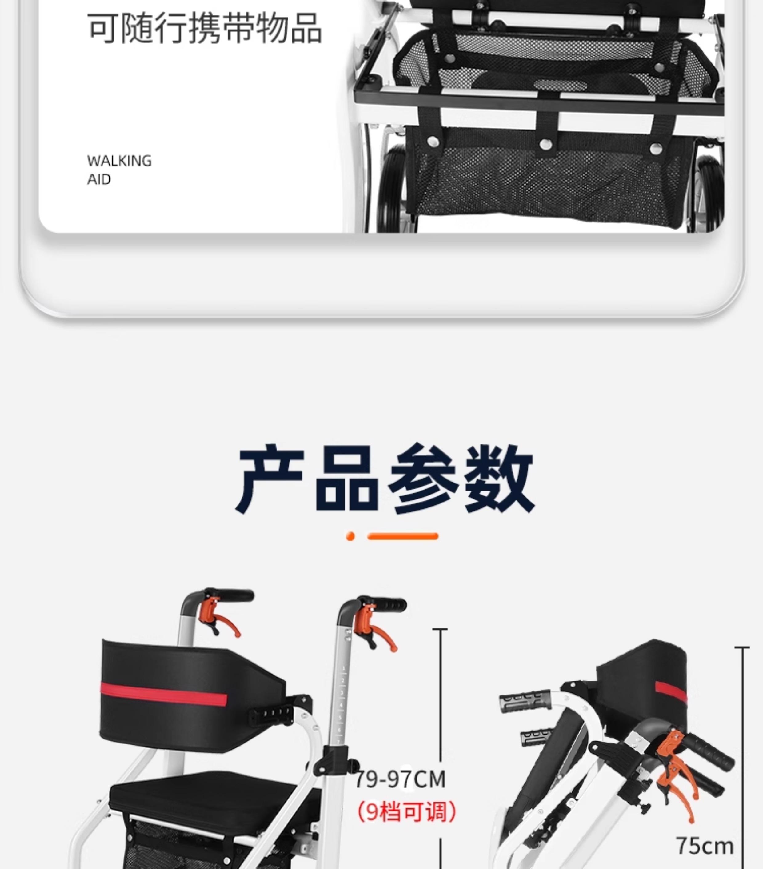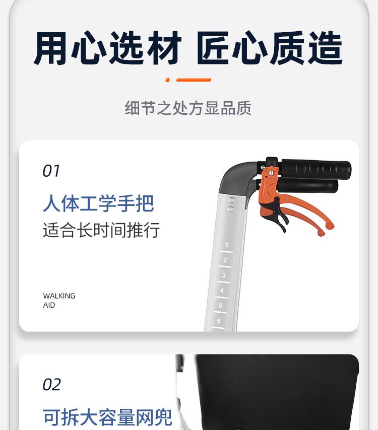 01 [orange carbon steel model] multifunctional walker + sit and push | 6 levels of height adjustable