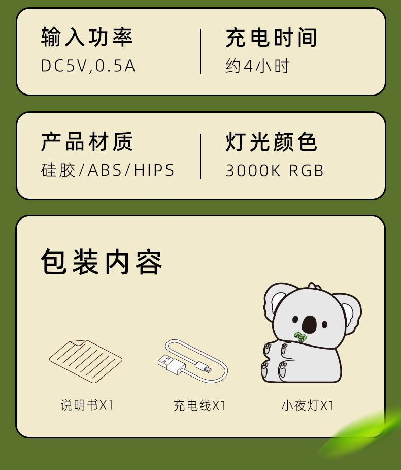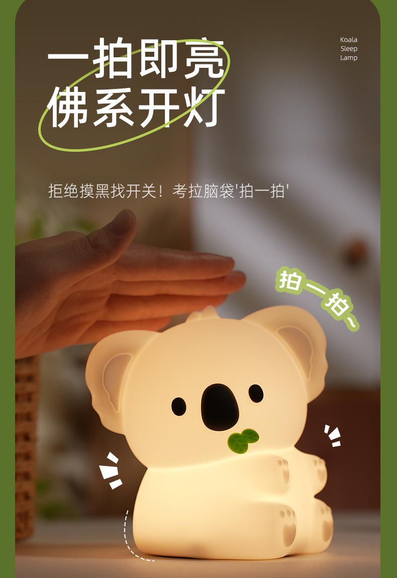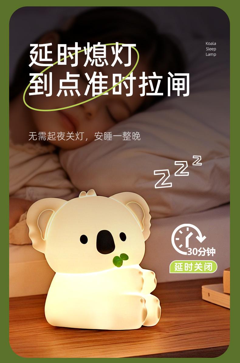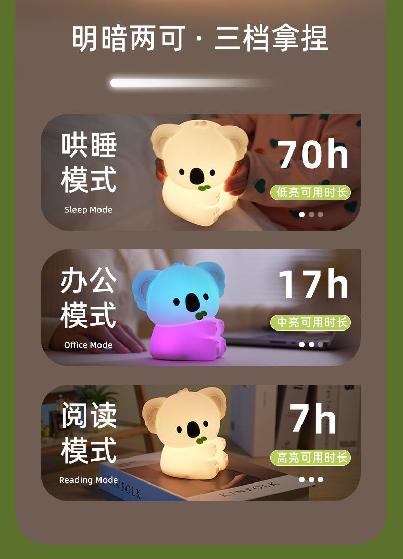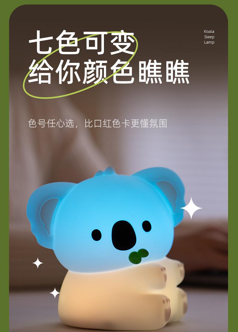 Koala color-changing lamp with up/down color shift, timer, three-level warm light, and dial switch