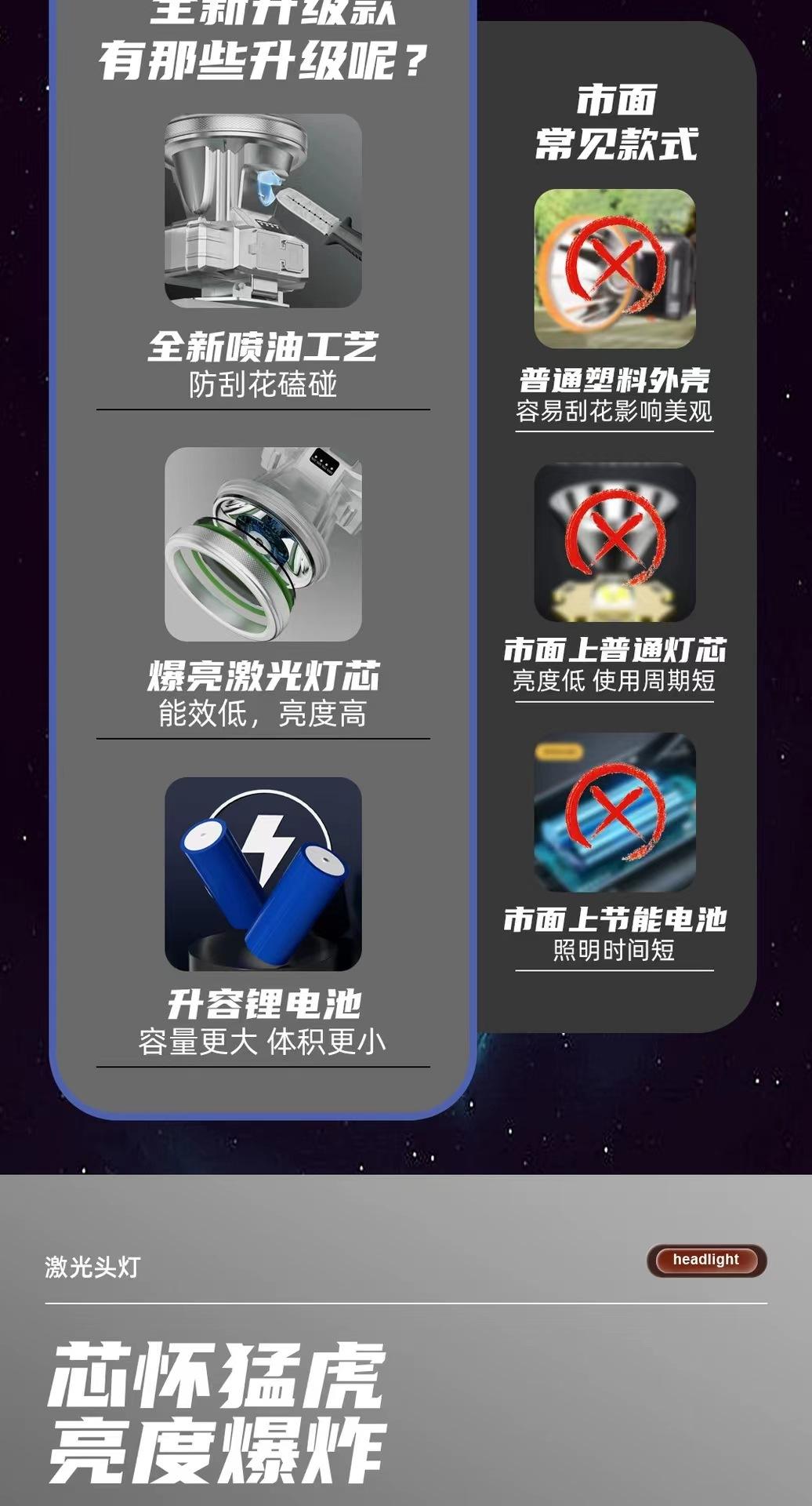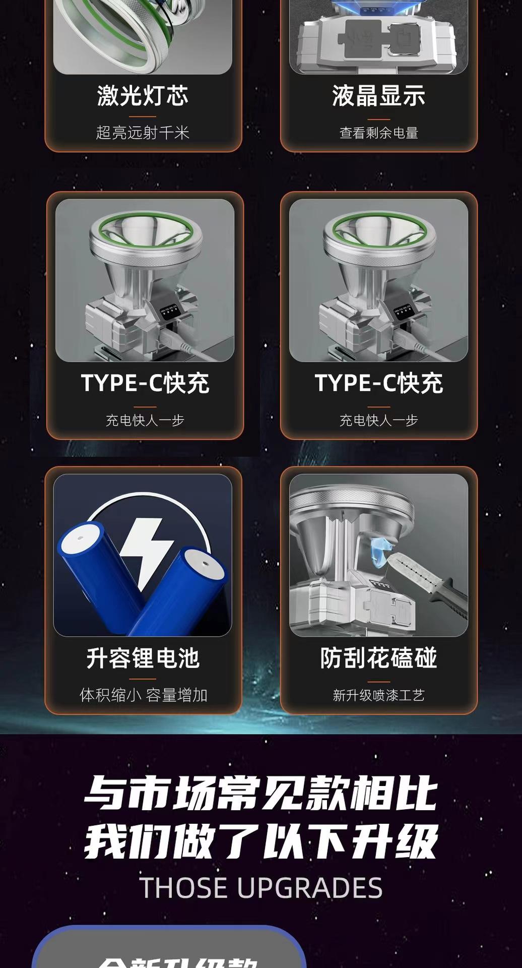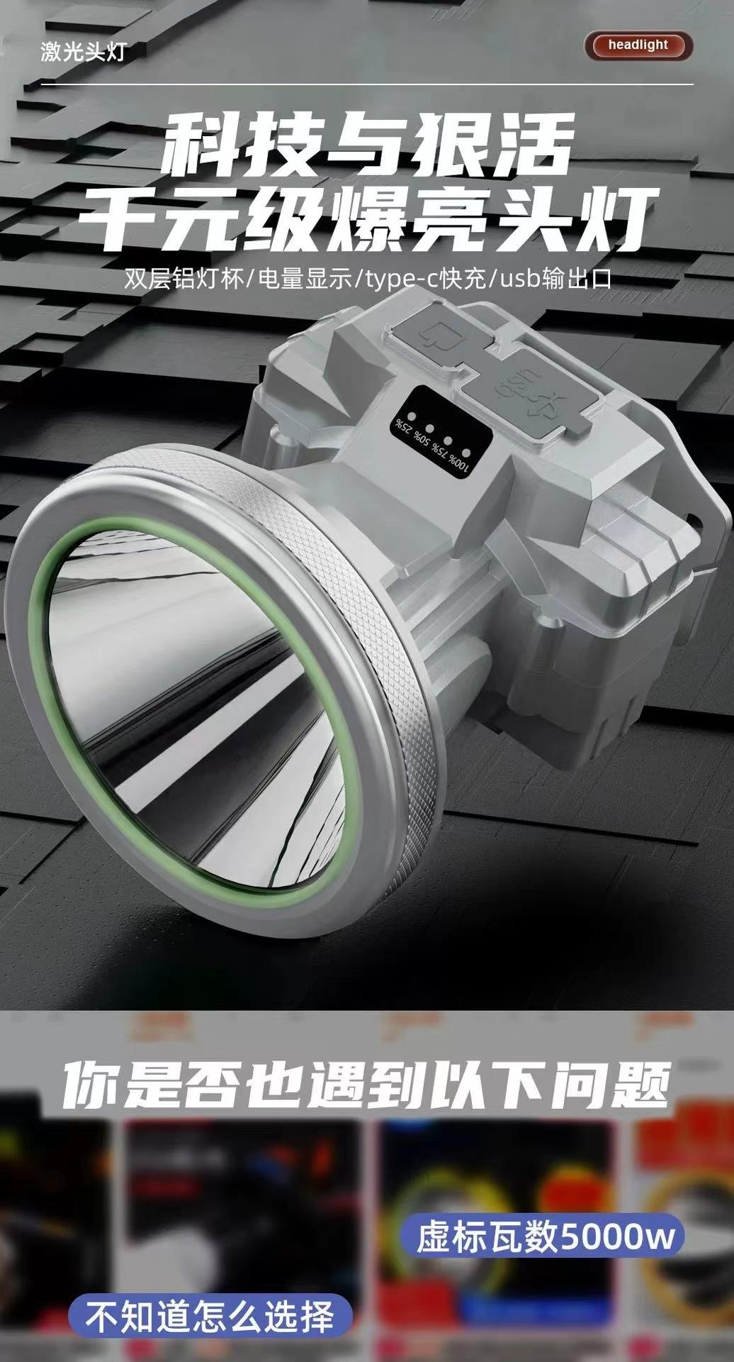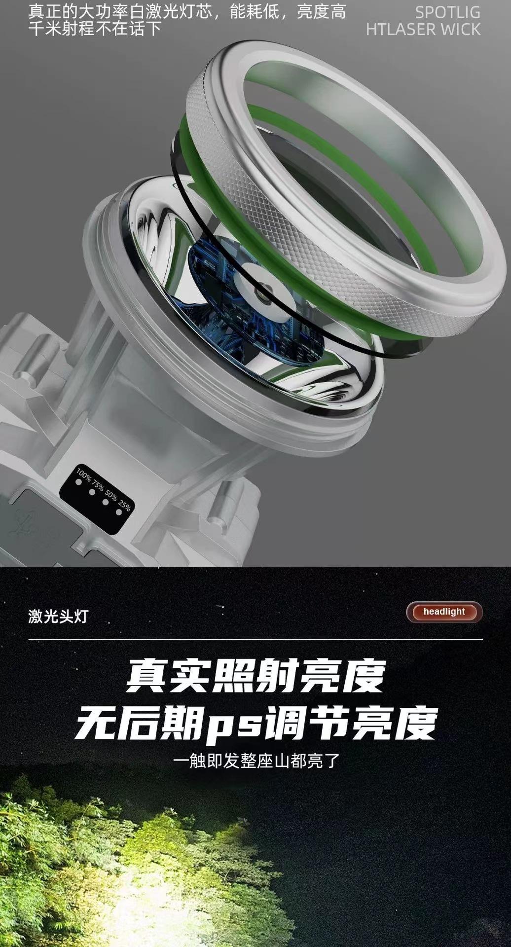 Faro LED Campo Luz Fuerte Linterna Superbrillante Larga Duración Batería de Litio Exterior Especial Lámpara de Pesca Montada en la Cabeza Lámpara de Minero