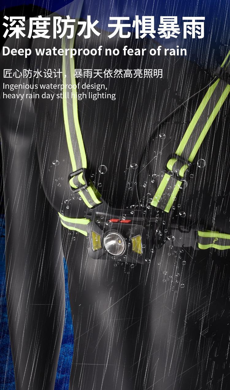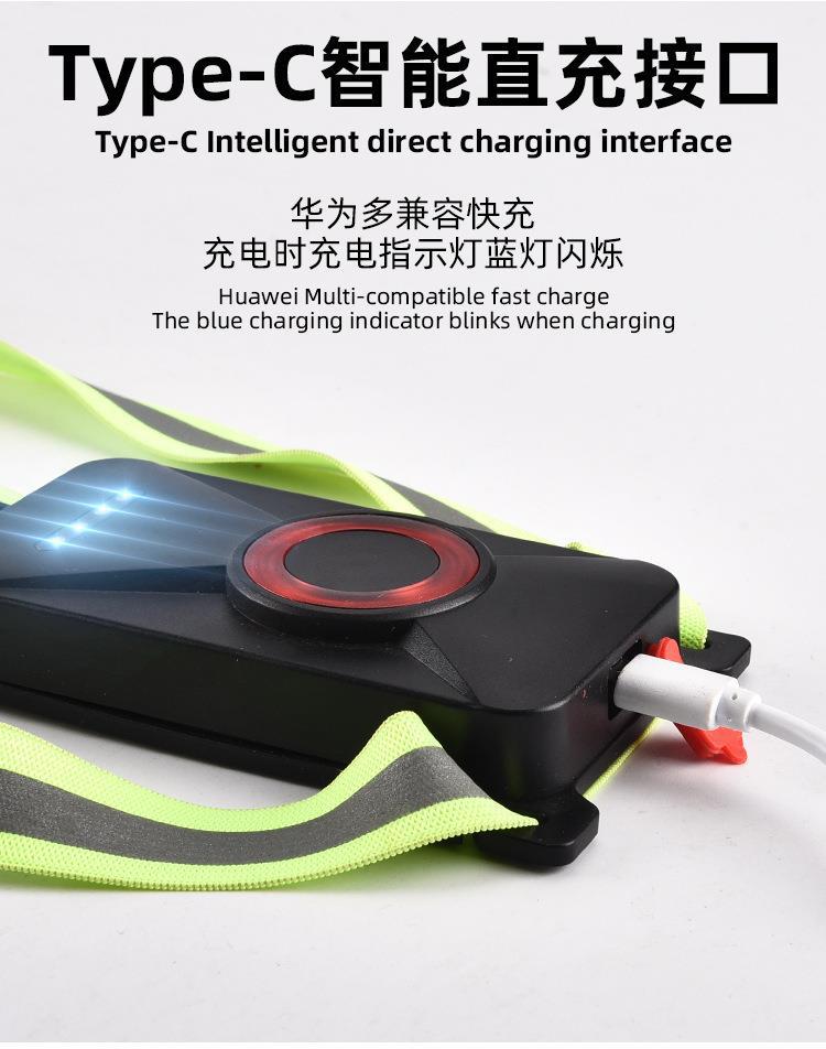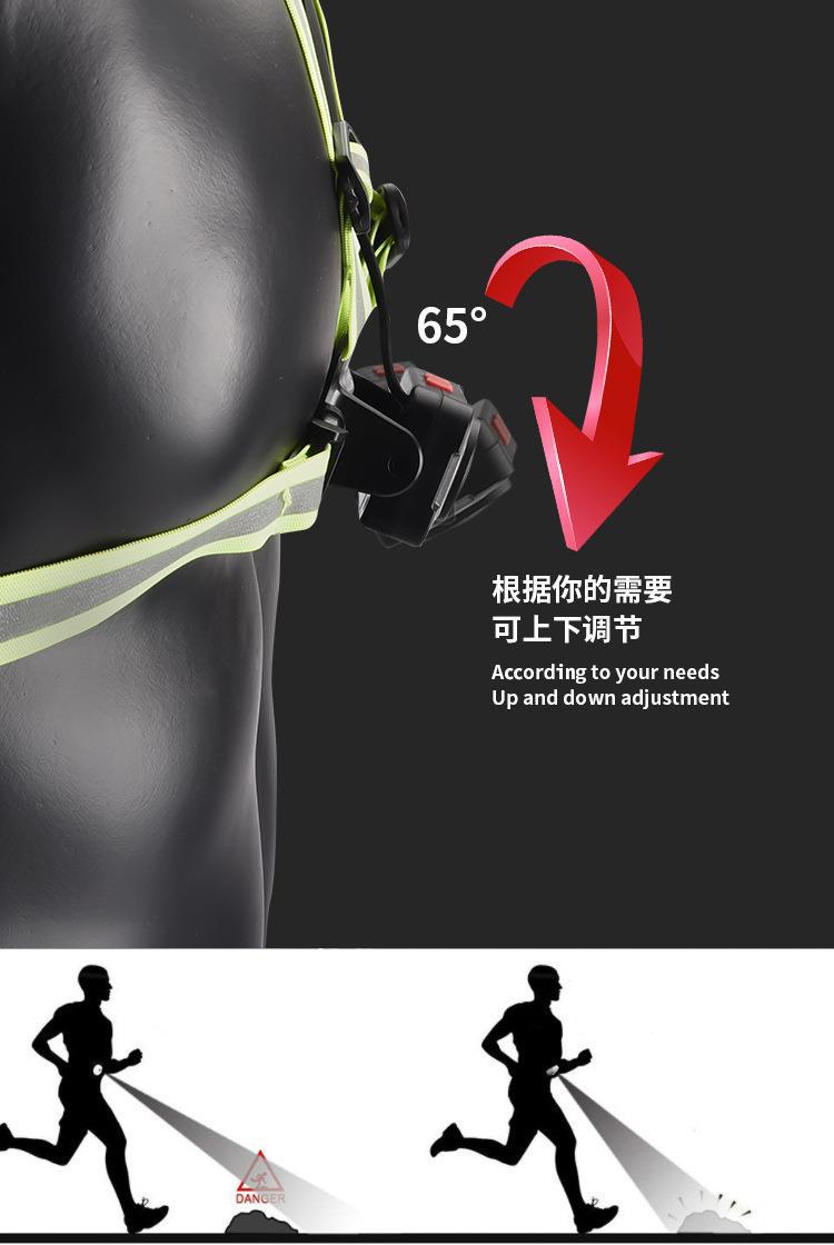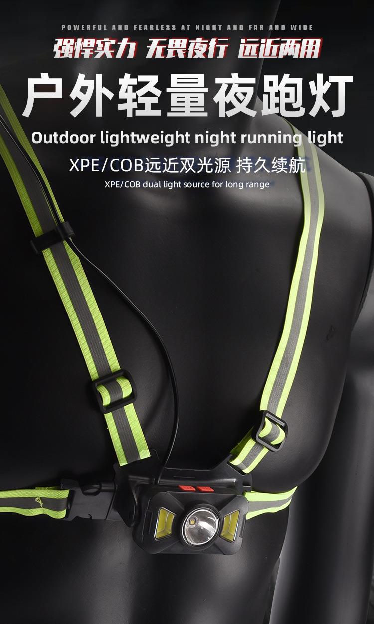 Nueva luz de carrera recargable transfronteriza tipo C, luz de pecho para montañismo al aire libre, luz de carrera nocturna, luz de advertencia.