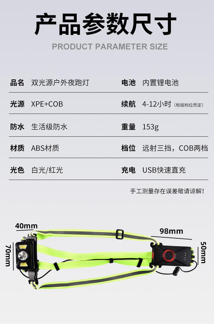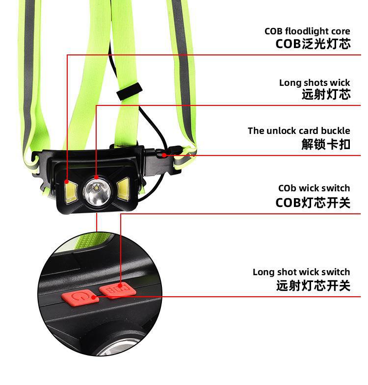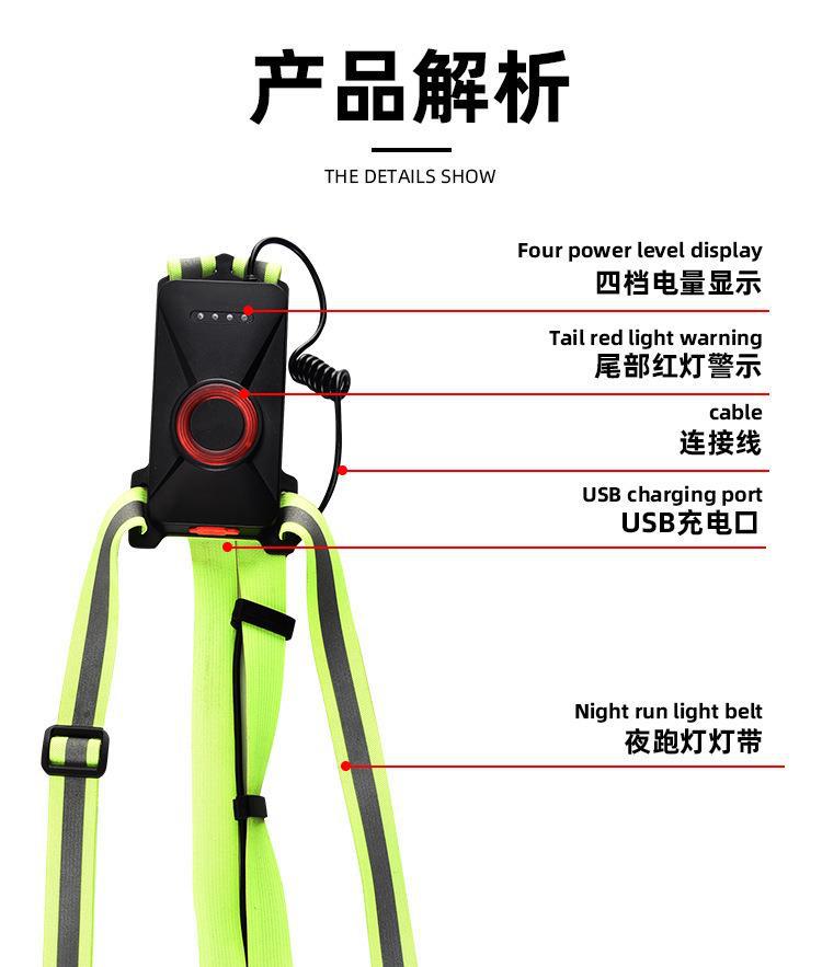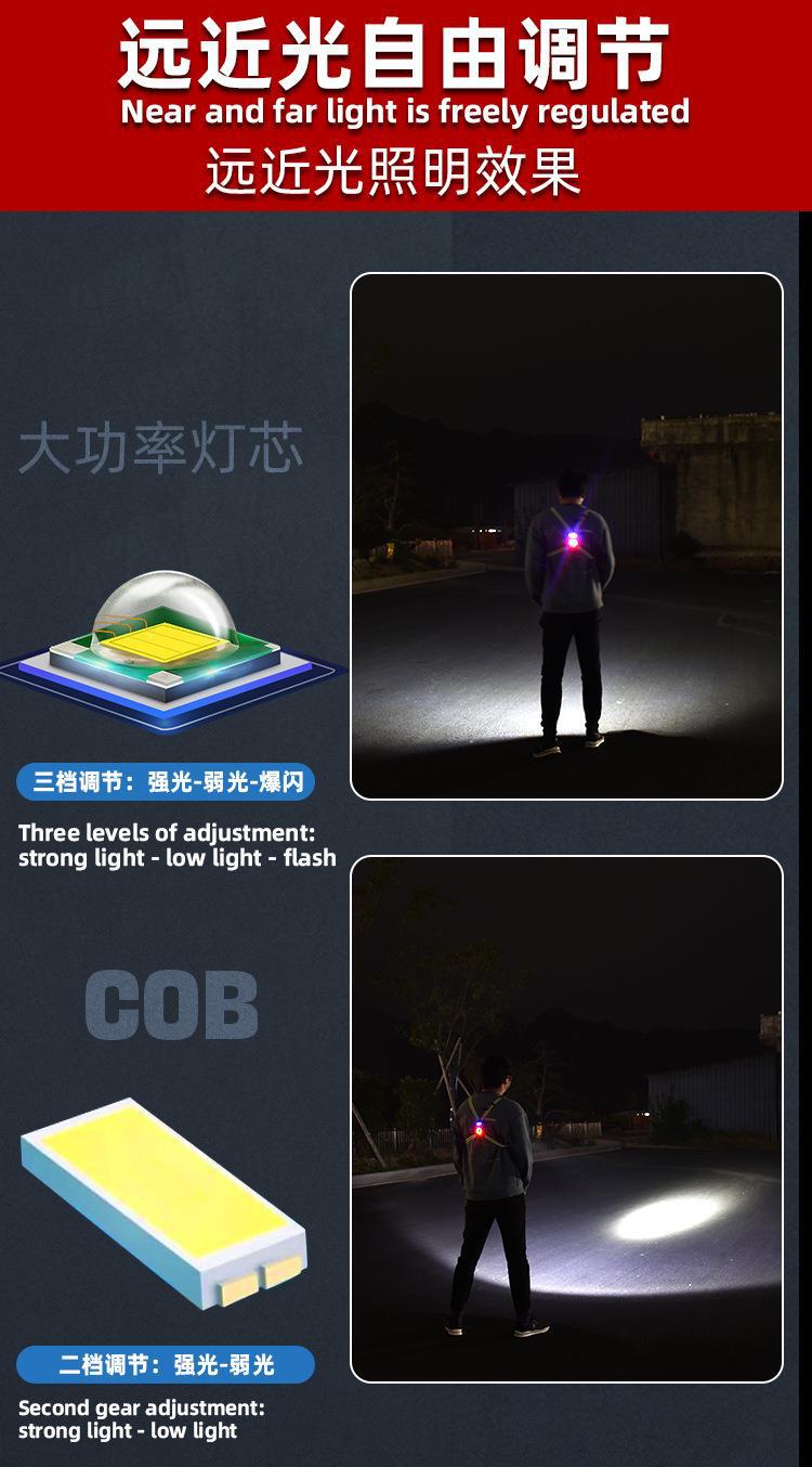 Nueva luz de carrera recargable transfronteriza tipo C, luz de pecho para montañismo al aire libre, luz de carrera nocturna, luz de advertencia.