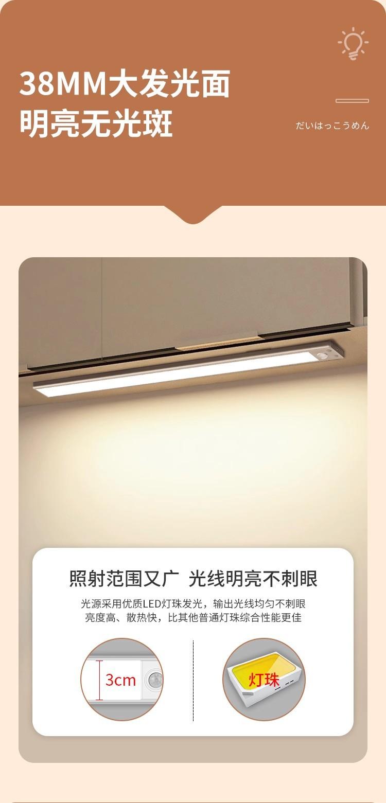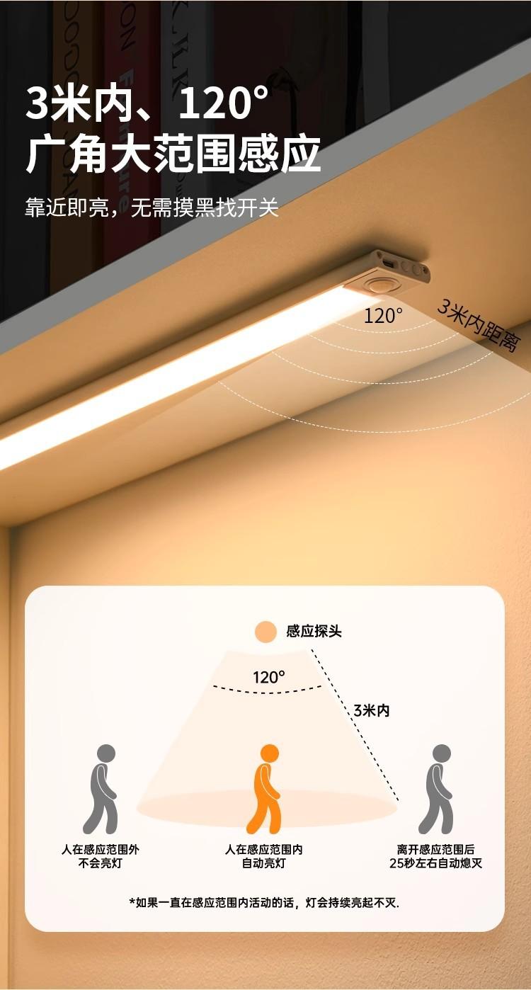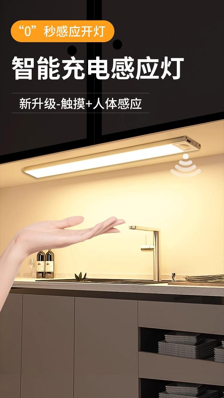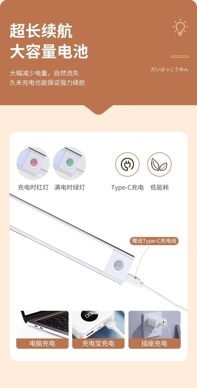 Luz LED ultrafina inteligente con inducción del cuerpo humano, tira de luz larga magnética autoadhesiva para armario, recargable, tira de luz para armario de vinoteca