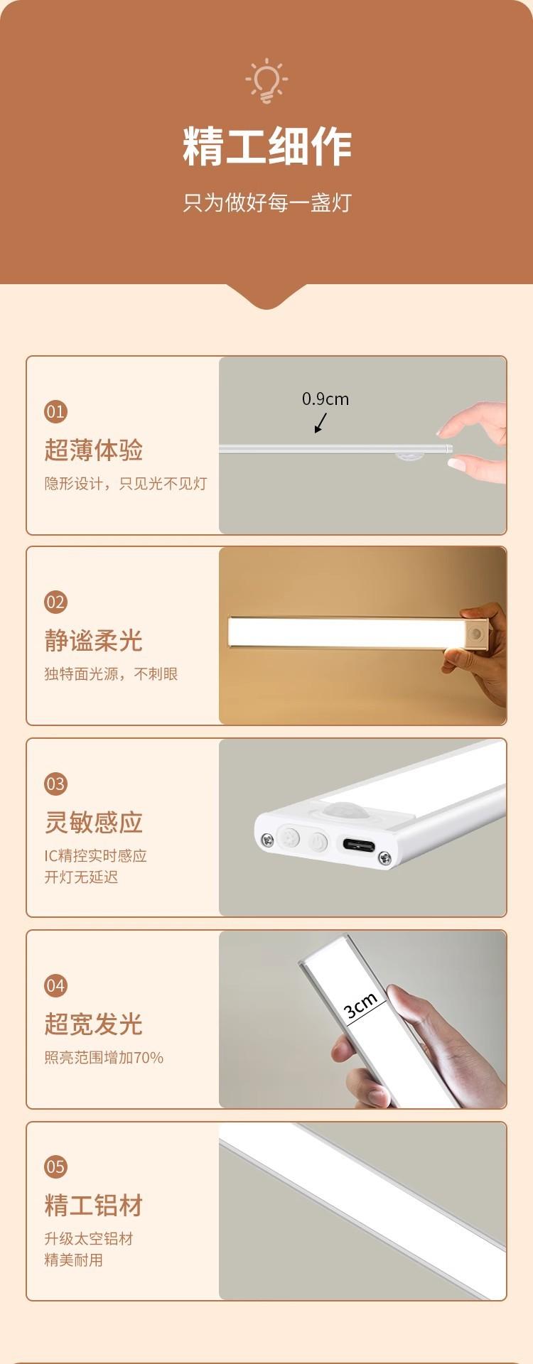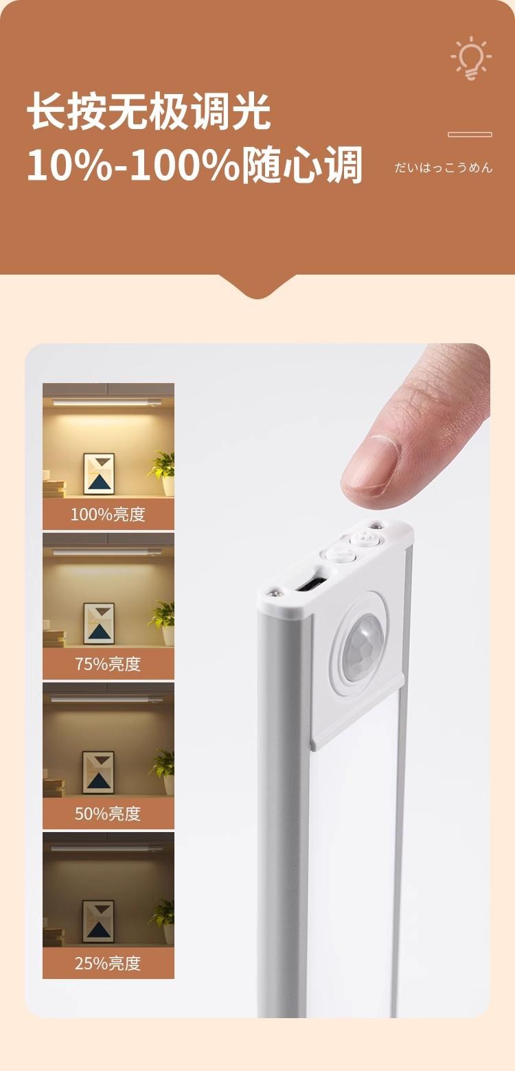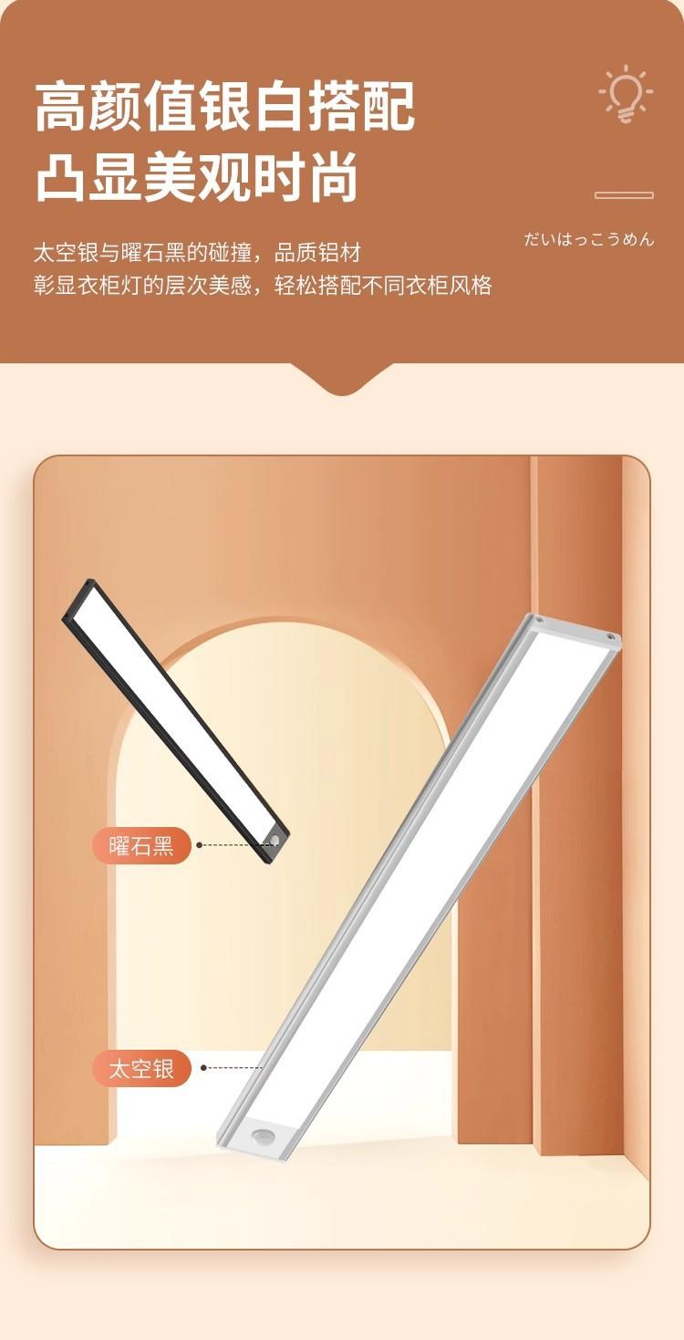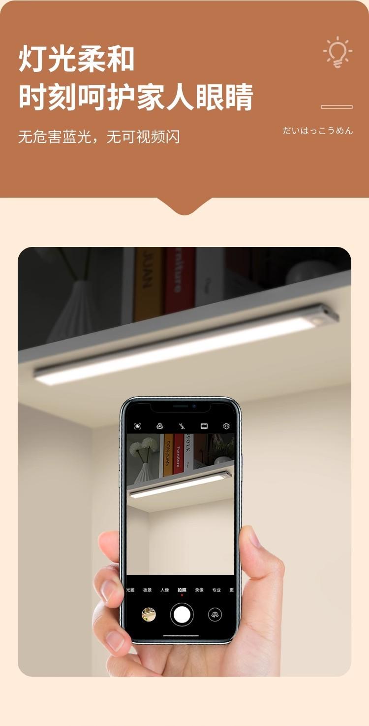 Luz LED ultrafina inteligente con inducción del cuerpo humano, tira de luz larga magnética autoadhesiva para armario, recargable, tira de luz para armario de vinoteca