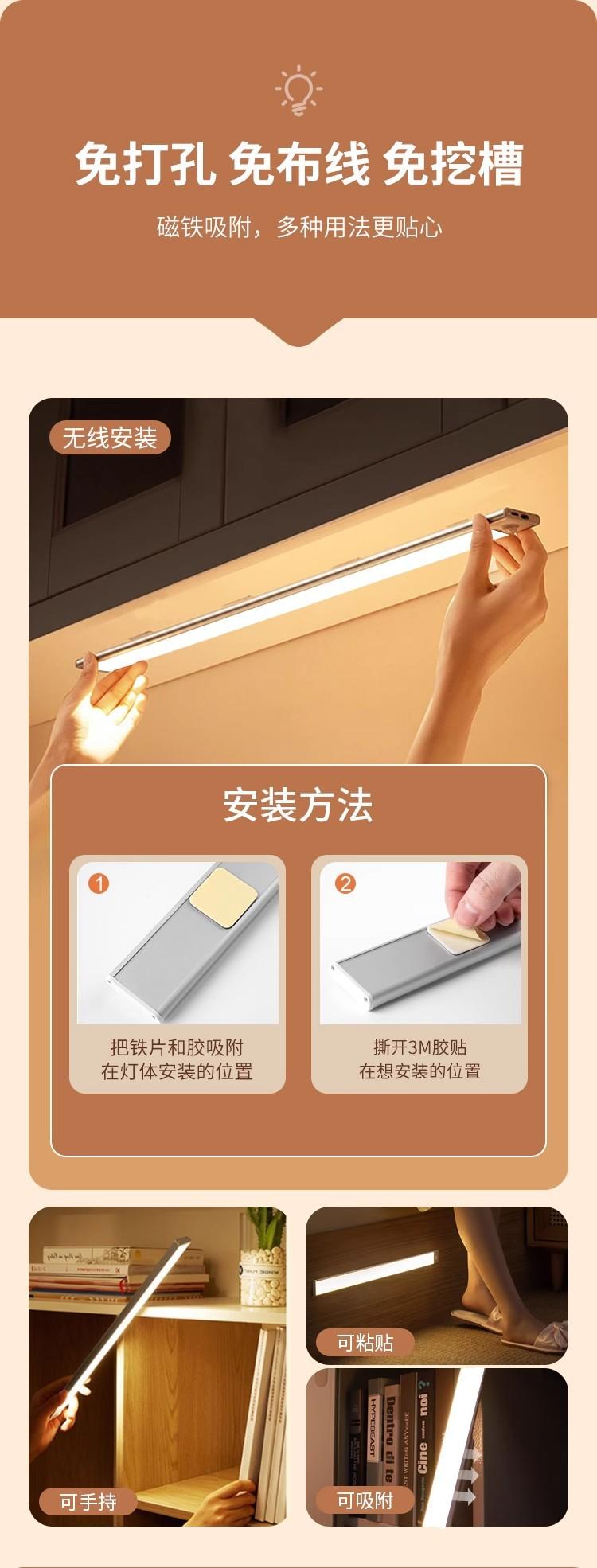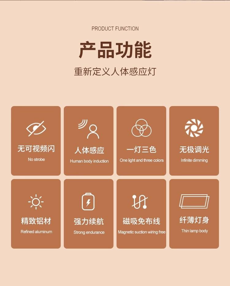 Sensor Light, Magnetic attraction, Glows and changes color, chargeable, Human body induction, Stepless dimming, Dimming
