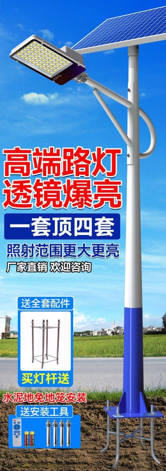 Luz de Calle Solar con Poste Ingeniería Juego Completo de Iluminación de Alta Potencia Ultrabrillante Led Luz Rural para Exterior Jardín
