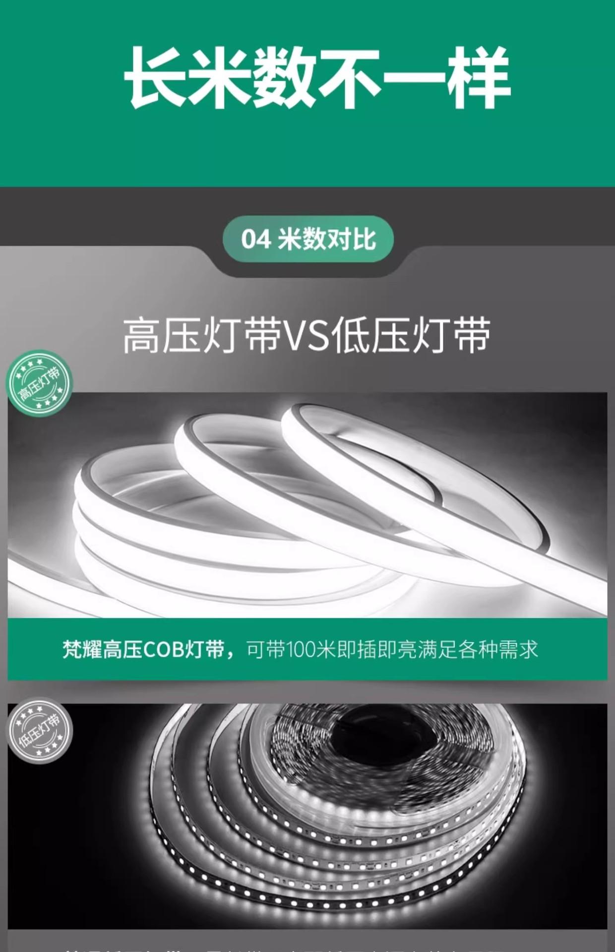 Pack of 100m [5d super bright outdoor waterproof] cut every 100cm - wide-angle cob without light spots or dark areas★Free 10 plugs