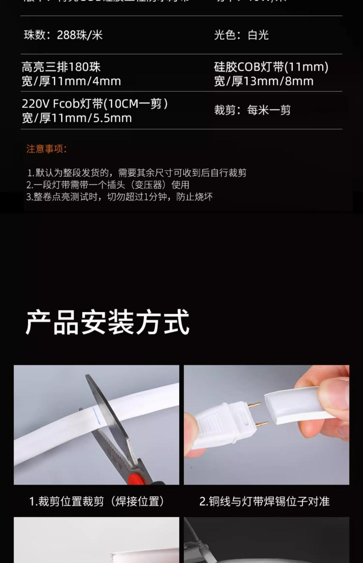 【pack of 3m】imported super bright cob fog light★Cut at any point every 10cm★Traceless self-adhesive glue