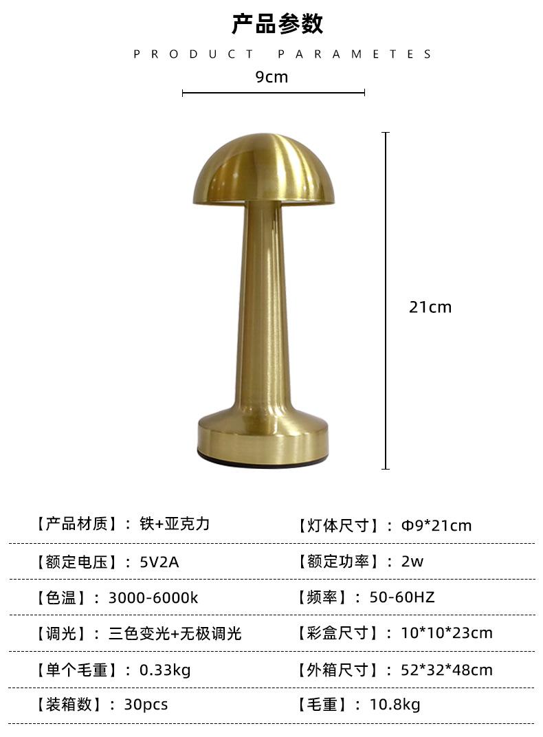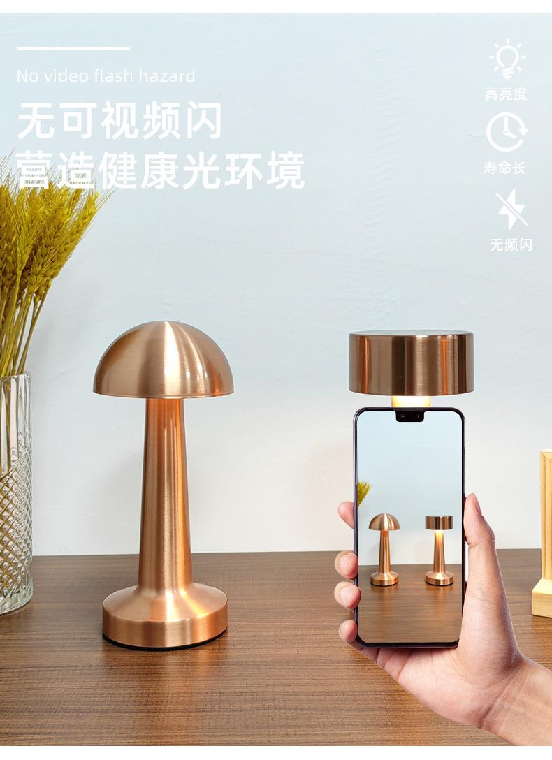 Lámpara de Mesa de Hongo de Hierro Recargable Ambiente de Mesa de Comedor Luz Nocturna Café Bar Restaurante Occidental Lámpara de Ambiente Escritorio