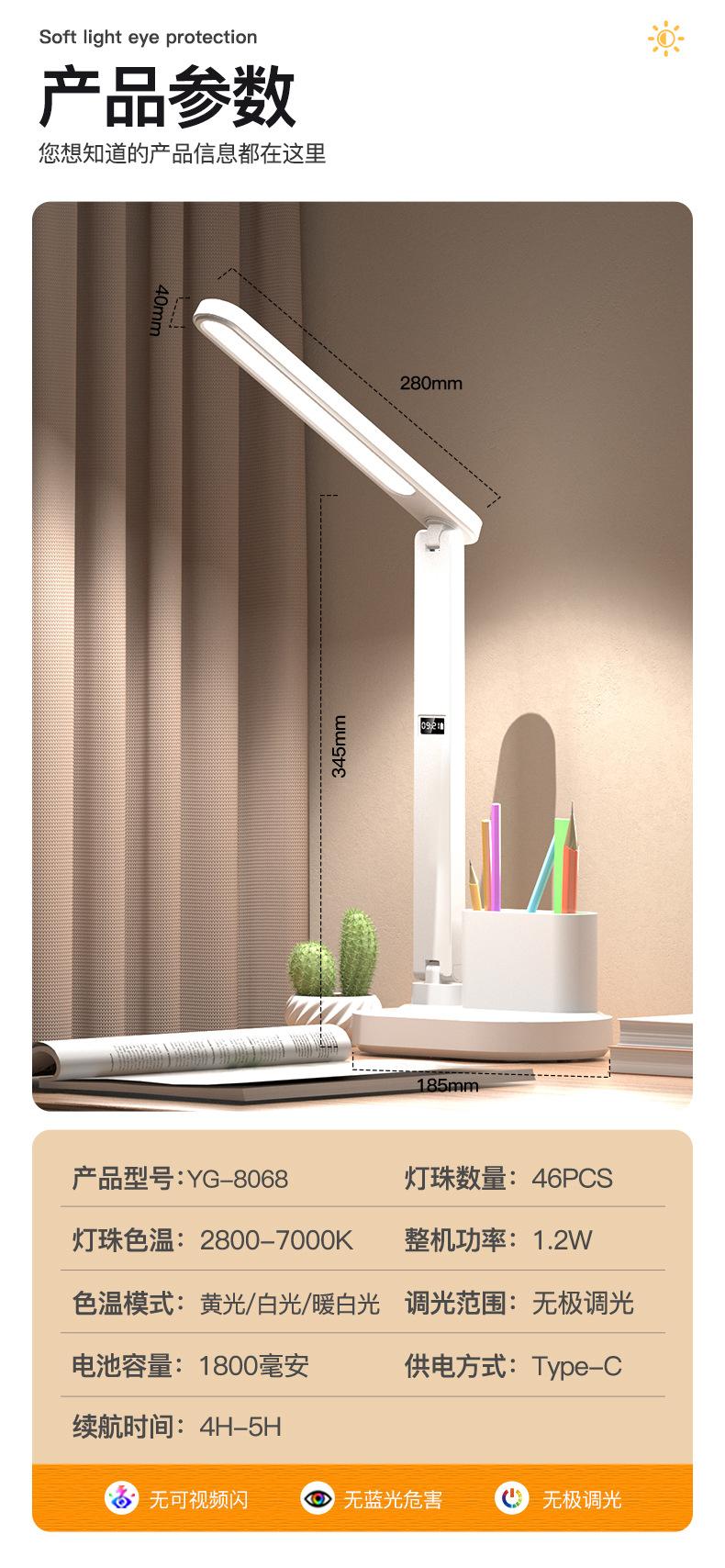 Lámpara de Escritorio LED Plegable Carga USB Atenuación Táctil Dormitorio de Estudiantes Estudio Lectura Lámpara de Escritorio Lámpara de Noche para Dormitorio Protección para los Ojos