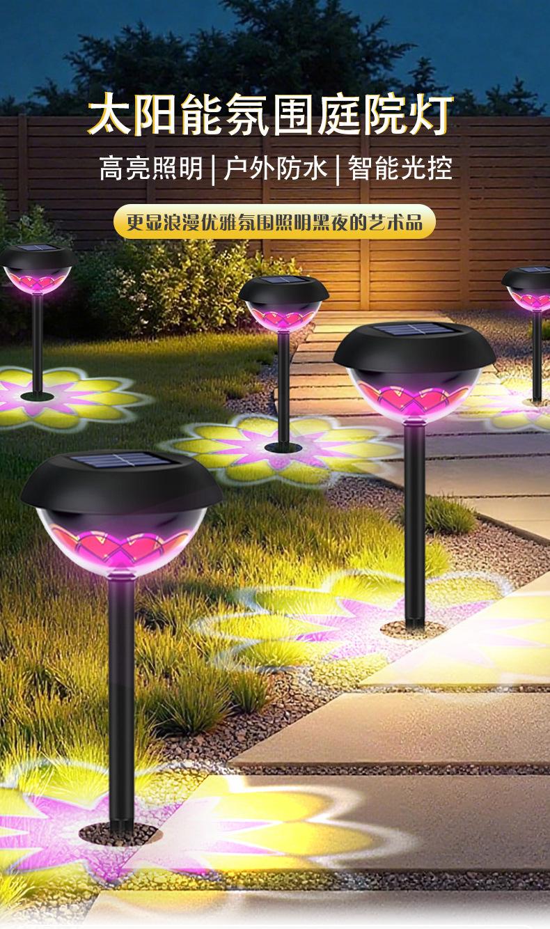 Lámpara Solar de Césped para Exterior Sci-Fi Colorida Cambiante Impermeable Lámpara de Ambiente para Campamento Led Lámpara de Paisaje con Estaca para Jardín