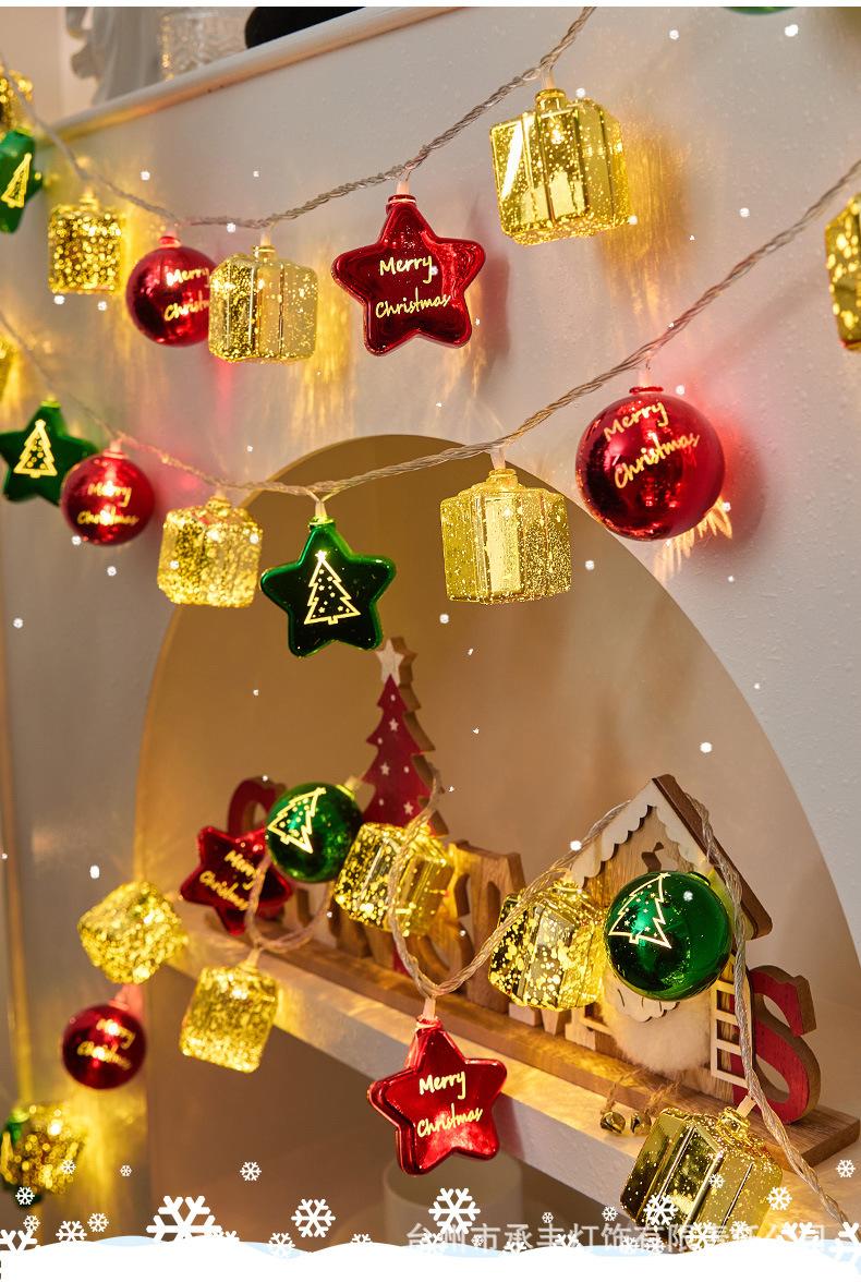 Cadena de Luces Decorativas Navideñas Transfronterizas Led Galvanizadas Caja de Regalo Estrella de Cinco Puntas Cadena de Luces Pequeñas y Coloridas Ambiente Festivo Decoración de Luz para Árbol