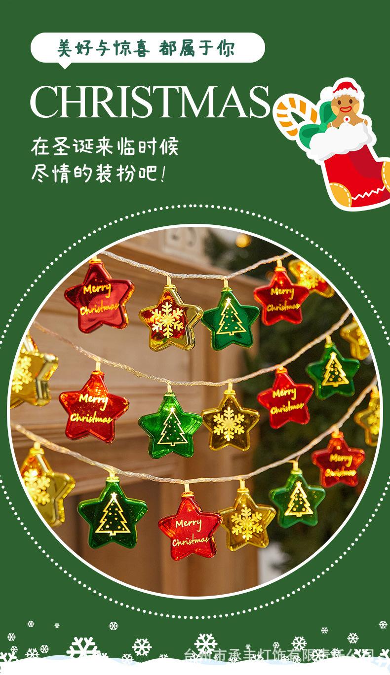 Guirnalda de luces LED de Navidad transfronteriza Papá Noel muñeco de nieve luces decorativas galvanoplastia estrella de cinco puntas batería luces pequeñas de colores luces intermitentes