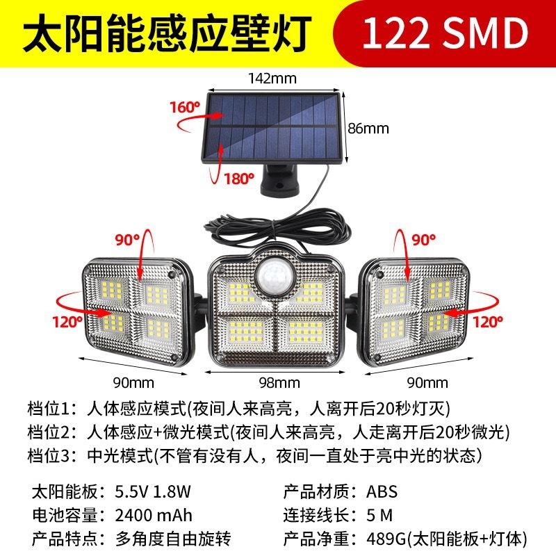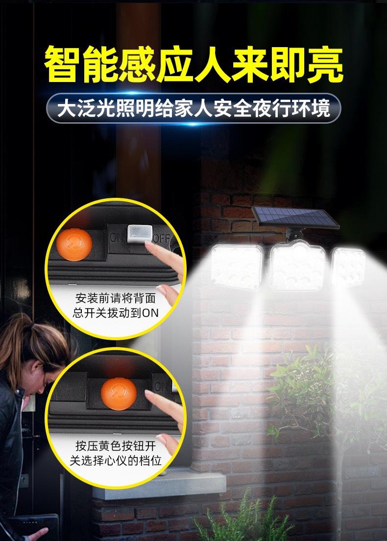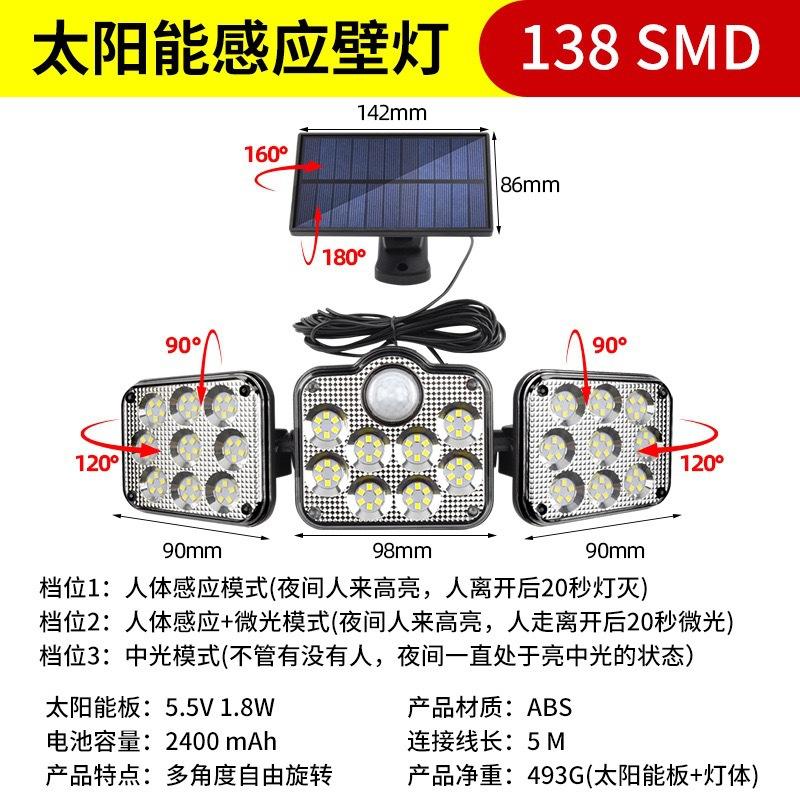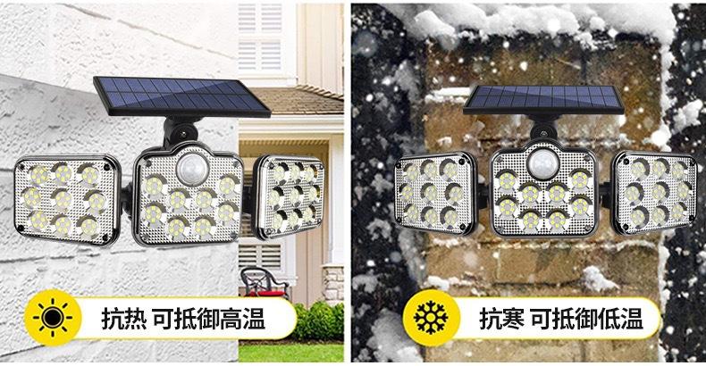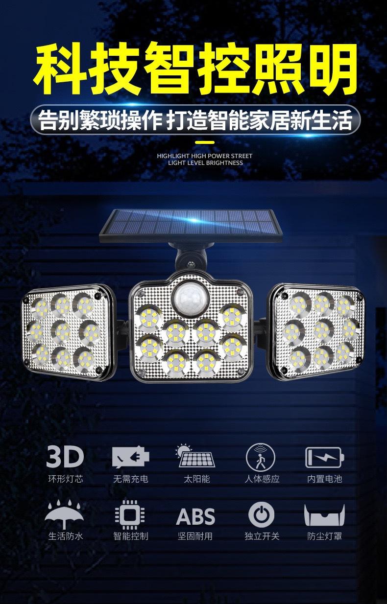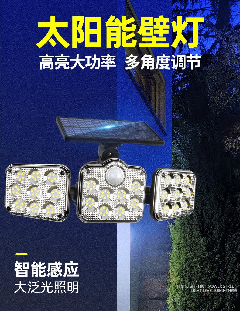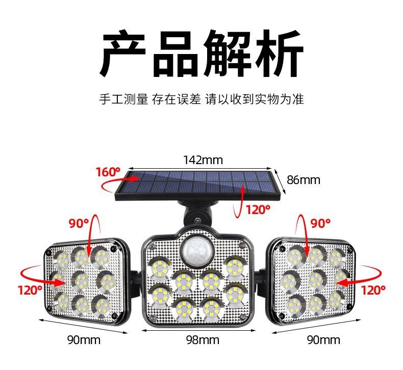 Nueva Lámpara Solar de Pared LED de Tres Cabezales Lámpara Solar de Jardín Dividida Transfronteriza Lámpara Exterior con Sensor de Cuerpo Humano