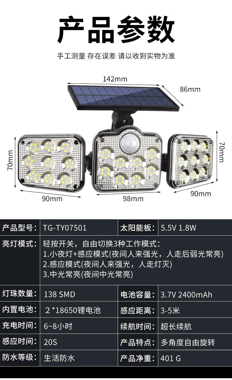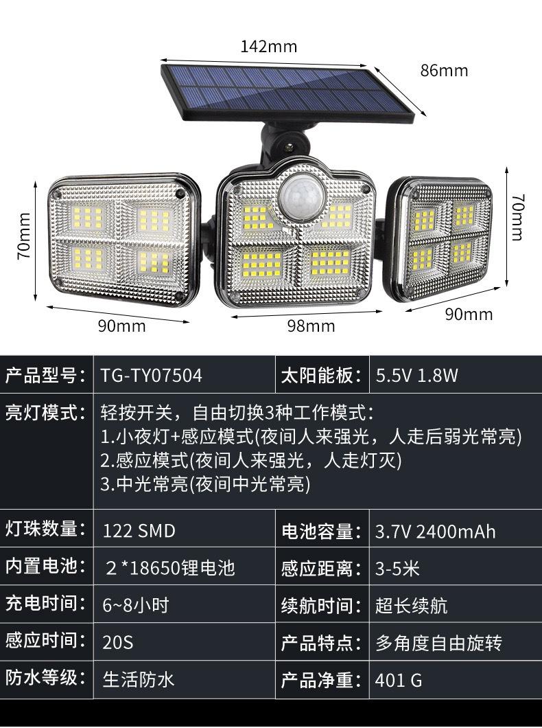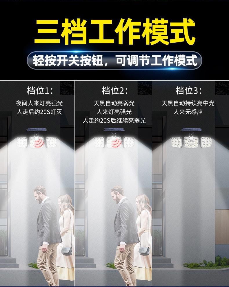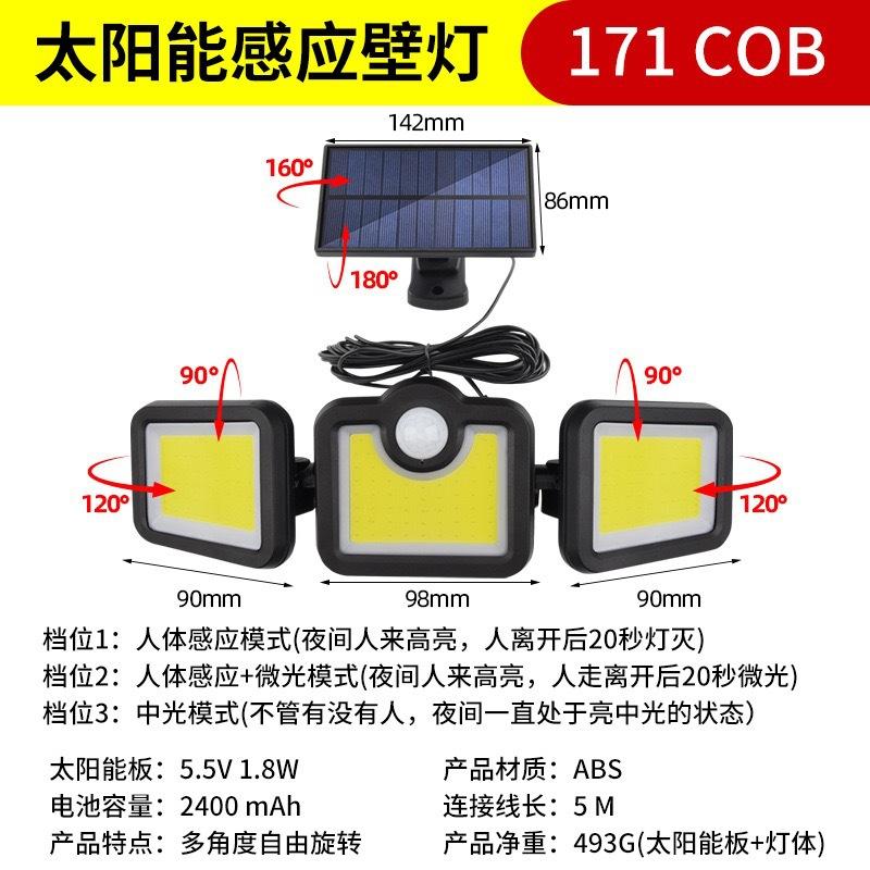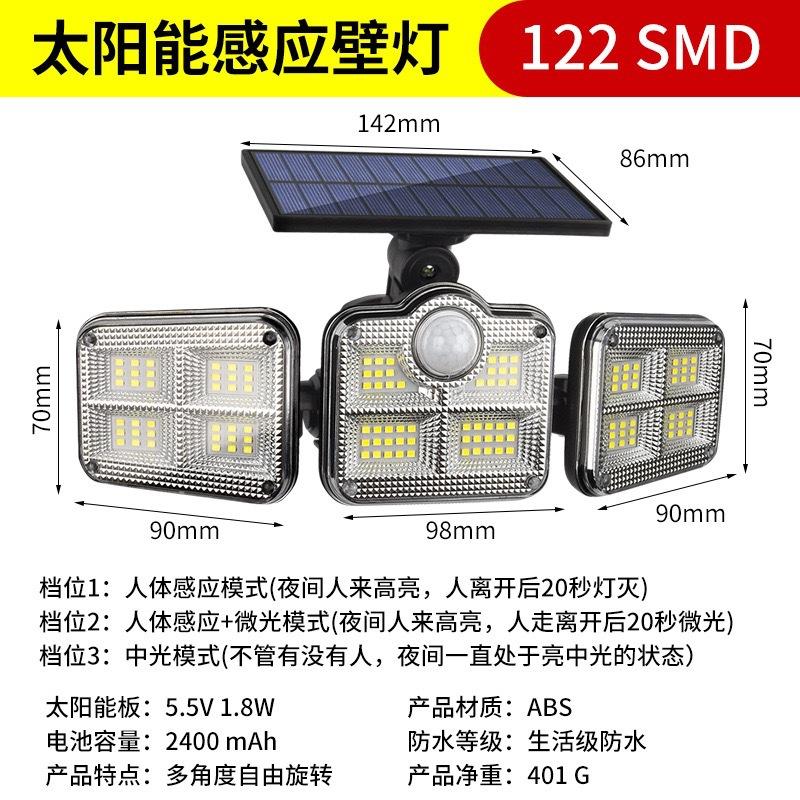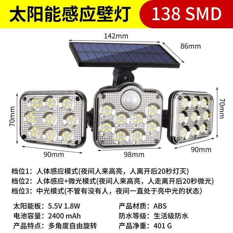 Nueva Lámpara Solar de Pared LED de Tres Cabezales Lámpara Solar de Jardín Dividida Transfronteriza Lámpara Exterior con Sensor de Cuerpo Humano