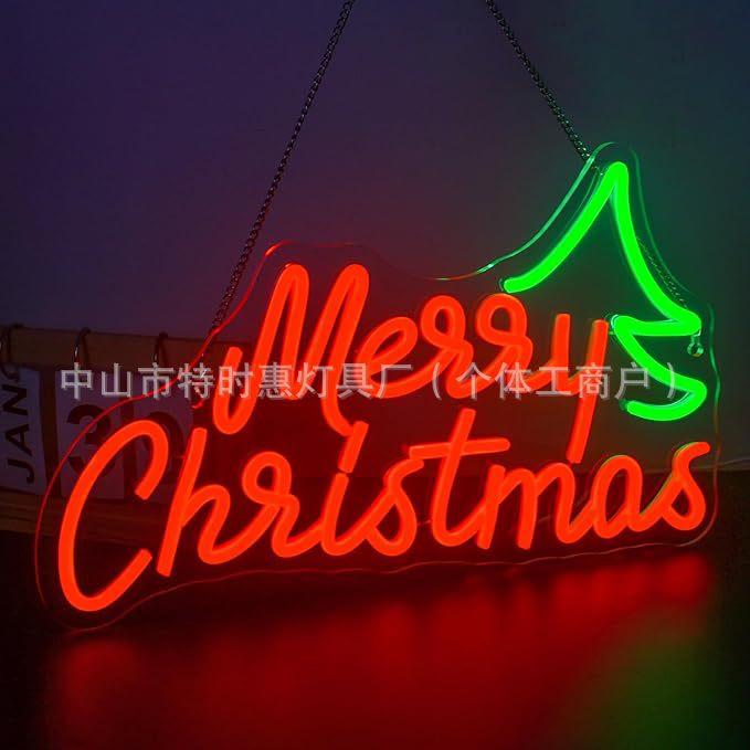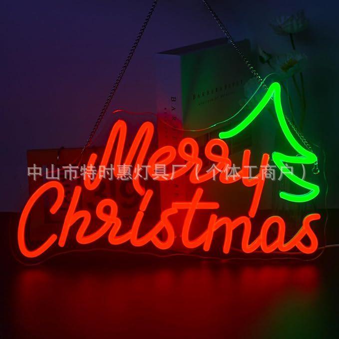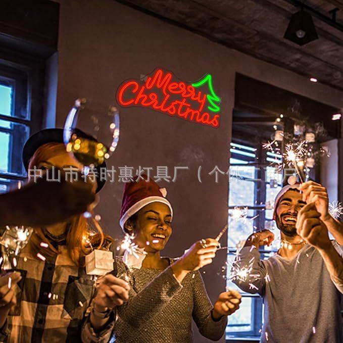 Luz de Neón LED Transfronteriza Navidad Feliz Navidad Palabras Luminosas Decoración de Bar Sala de E-sports Luz de Ambiente