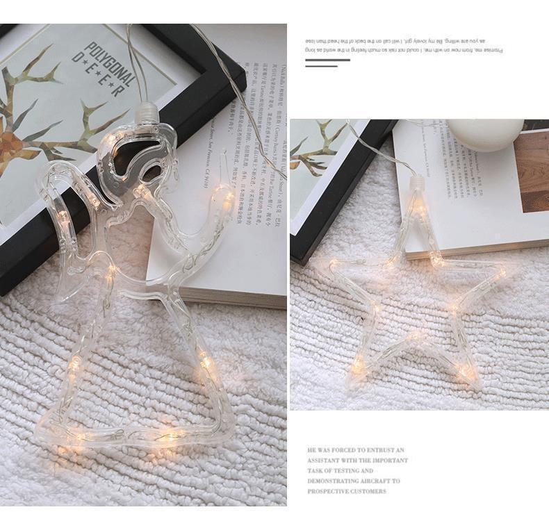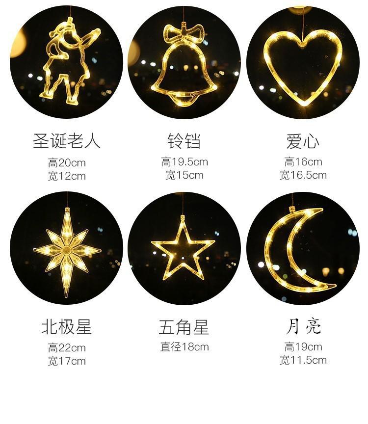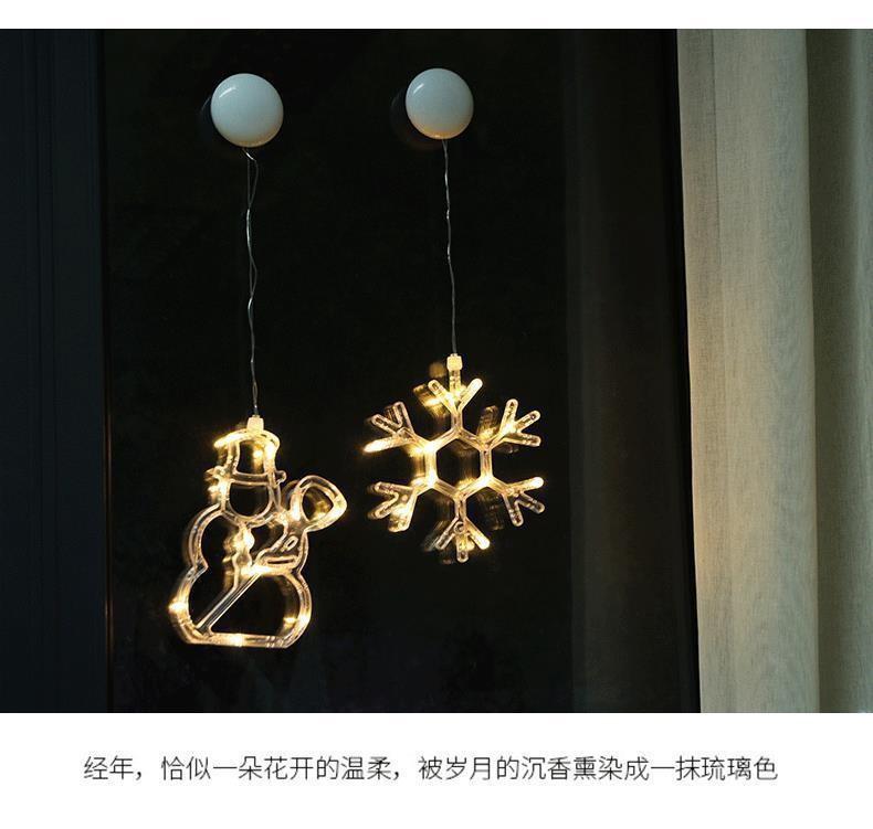 Decoración Transfronteriza Decoración Navideña LED Luces de Ventosa Muñeco de Nieve Árbol de Navidad Estrella de Cinco Puntas Cortina Luces de Batería Guirnaldas de Luces Festivas